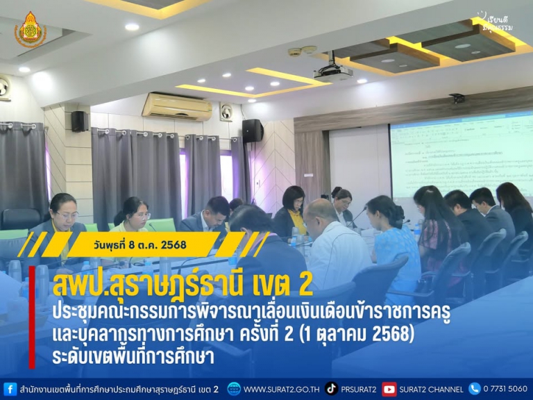 สรุปมติประชุม อ.ก.ค.ศ. เขตพื้นที่การศึกษาประถมศึกษาสุราษฎร์ธานี เขต 2 ครั้งที่ 12/2568 เมื่อวันที่ 19 กันยายน 2568