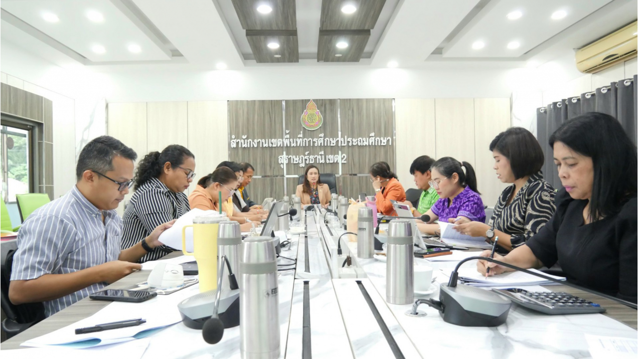 วันที่ 18 กันยายน พ.ศ. 2568 นางสาวปวิชญา สินน้อย ผู้อำนวยการสำนักงานเขตพื้นที่การศึกษาประถมศึกษาสุราษฎร์ธานี เขต 2 เป็นประธานในการประชุมคณะกรรมการบริหารงบประมาณสำนักงานเขตพื้นที่การศึกษา ปีงบประมาณ พ.ศ. 2568 ครั้งที่ 5/2568 โดยมีนายภูริพัฒน์ บุญมา รองผู้อำนวยการสำนักงานเขตพื้นที่ฯ พร้อมด้วยคณะกรรมการบริหารงบประมาณ เข้าร่วมประชุมอย่างพร้อมเพรียง ณ ห้องประชุมพุนพิน สพป.สุราษฎร์ธานี เขต 2 การประชุมครั้งนี้มีวัตถุประสงค์เพื่อบริหารจัดการด้านงบประมาณอย่างมีประสิทธิภาพ กำหนดแนวทาง แผนการกำกับติดตาม และการใช้งบประมาณให้เป็นไปตามระเบียบ กฎเกณฑ์ รวมทั้งเพื่อให้บุคลากรในสังกัดปฏิบัติงานได้อย่างสอดคล้องกับนโยบายและเป้าหมายของสำนักงานเขตพื้นที่ฯ