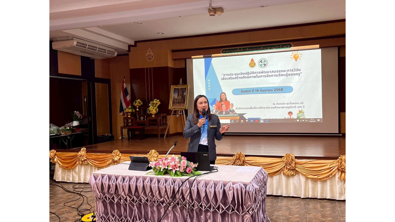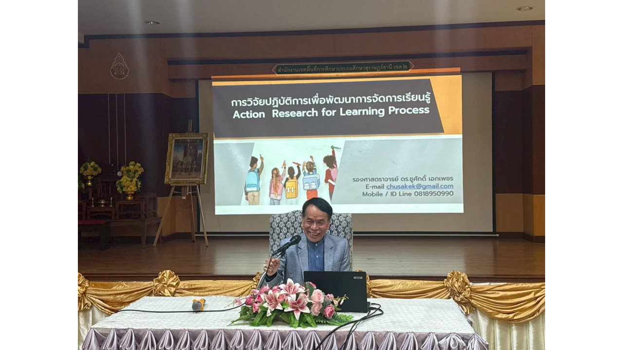 ทั้งนี้ การจัดประชุมได้รับเกียรติจาก รศ.ดร.ชูศักดิ์ เอกเพชร ผู้ทรงคุณวุฒิด้านการวิจัยทางการศึกษา มาเป็นวิทยากร ถ่ายทอดองค์ความรู้และประสบการณ์ เพื่อเสริมสร้างสมรรถนะด้านการวิจัยและยกระดับศักยภาพในการจัดการเรียนรู้ของครูในเขตพื้นที่การศึกษา