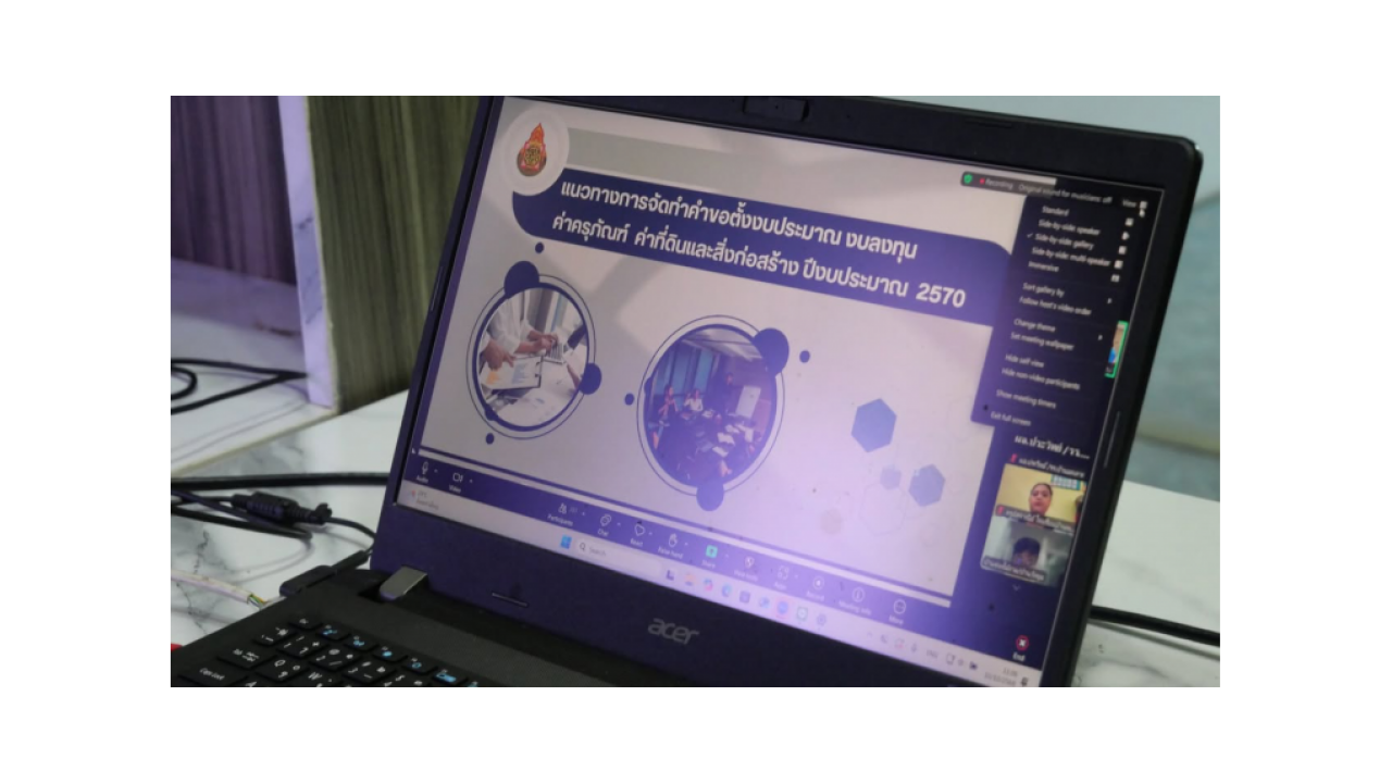 วันที่ 10 ตุลาคม 2568 นางสาวปวิชญา สินน้อย ผู้อำนวยการสำนักงานเขตพื้นที่การศึกษาประถมศึกษาสุราษฎร์ธานี เขต 2 เป็นประธานในการประชุมชี้แจงแนวทางการจัดทำคำขอตั้งงบประมาณ งบลงทุนค่าครุภัณฑ์ ค่าที่ดินและสิ่งก่อสร้าง ปีงบประมาณ 2570 พร้อมด้วย นางณปภัช ชูประเสริฐ ผู้อำนวยการกลุ่มนโยบายและแผน และครูผู้รับผิดชอบที่เกี่ยวข้องจากโรงเรียนในสังกัด ในรูปแบบออนไลน์ ผ่านแอพลิเคชั่น Zoom ณ ห้องประชุมพุนพิน สำนักงานเขตพื้นที่การศึกษาประถมศึกษาสุราษฎร์ธานี เขต 2