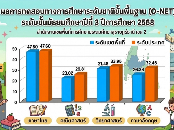 สรุปรายงานผลการทดสอบทางการศึกษาระดับชาติขั้นพื้นฐาน (O-NET) ชั้นมัธยมศึกษาปีที่ 3 ประจำปีการศึกษา 2568 (ดู : 91)