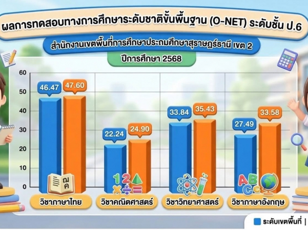 สรุปรายงานผลการทดสอบทางการศึกษาระดับชาติขั้นพื้นฐาน (O-NET) ระดับชั้นประถมศึกษาปีที่ 6 ประจำปีการศึกษา 2568 (ดู : 85)