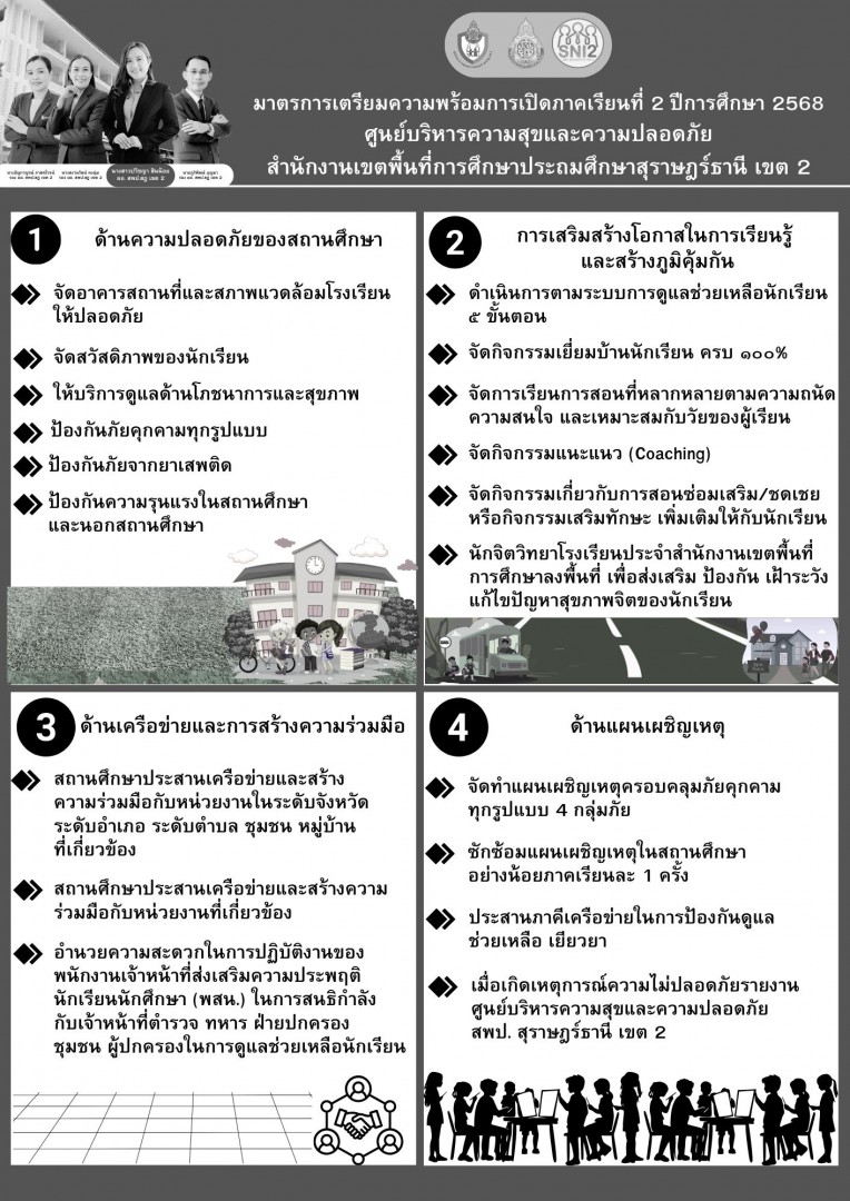 มาตรการเตรียมความพร้อมการเปิดภาคเรียนที่ 2 ปีการศึกษา 2568 ศูนย์บริหารความสุขและความปลอดภัย สำนักงานเขตพื้นที่การศึกษาประถมศึกษาสุราษฎร์ธานี เขต 2