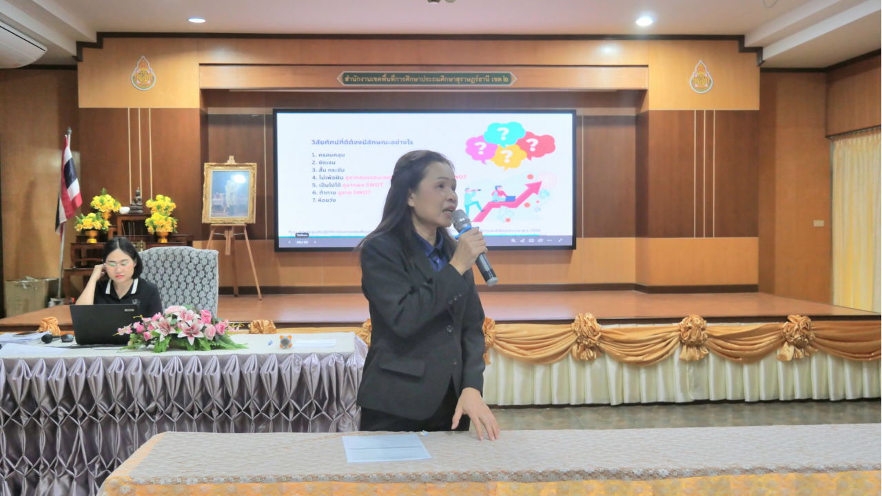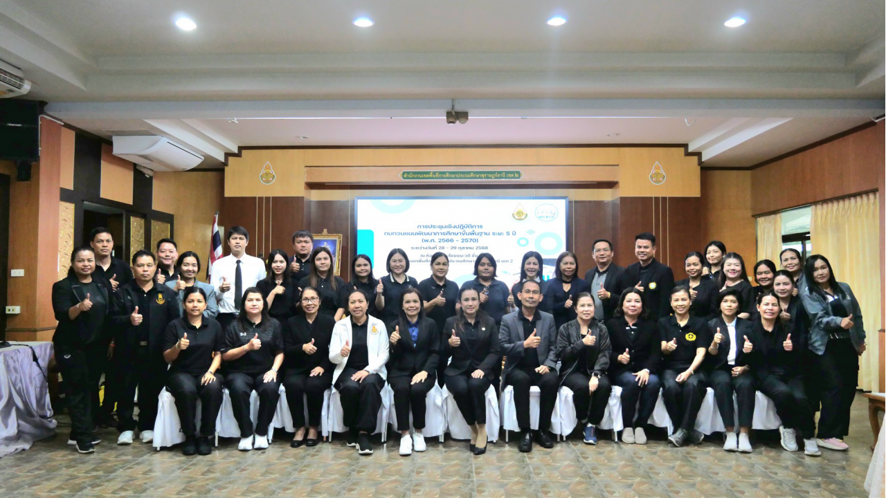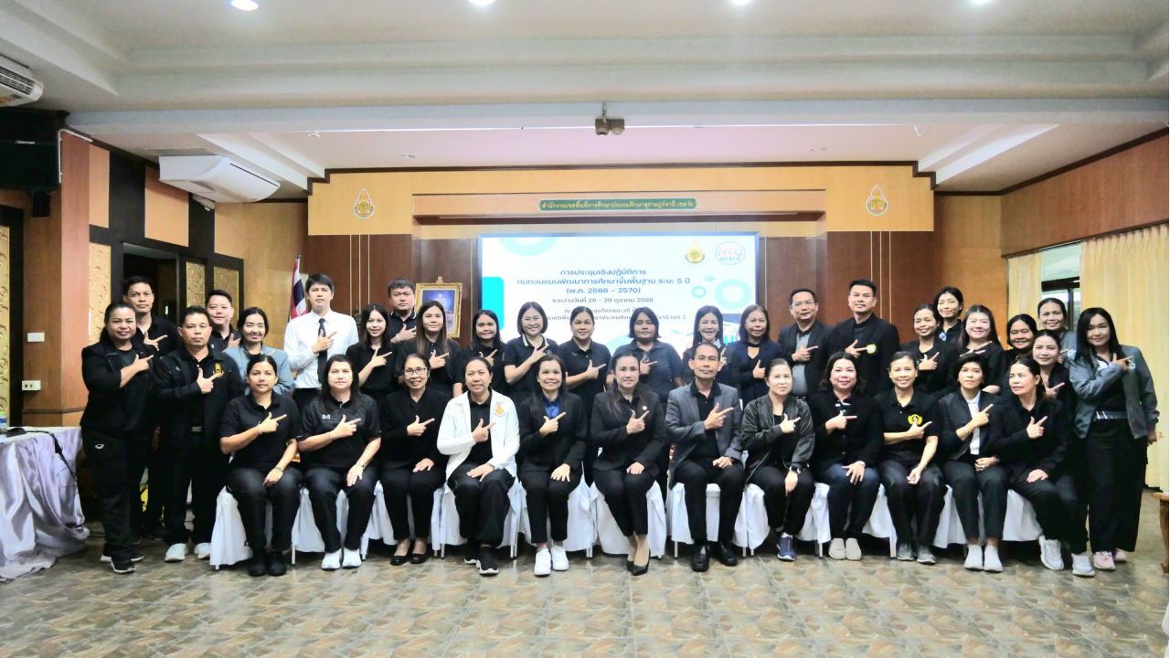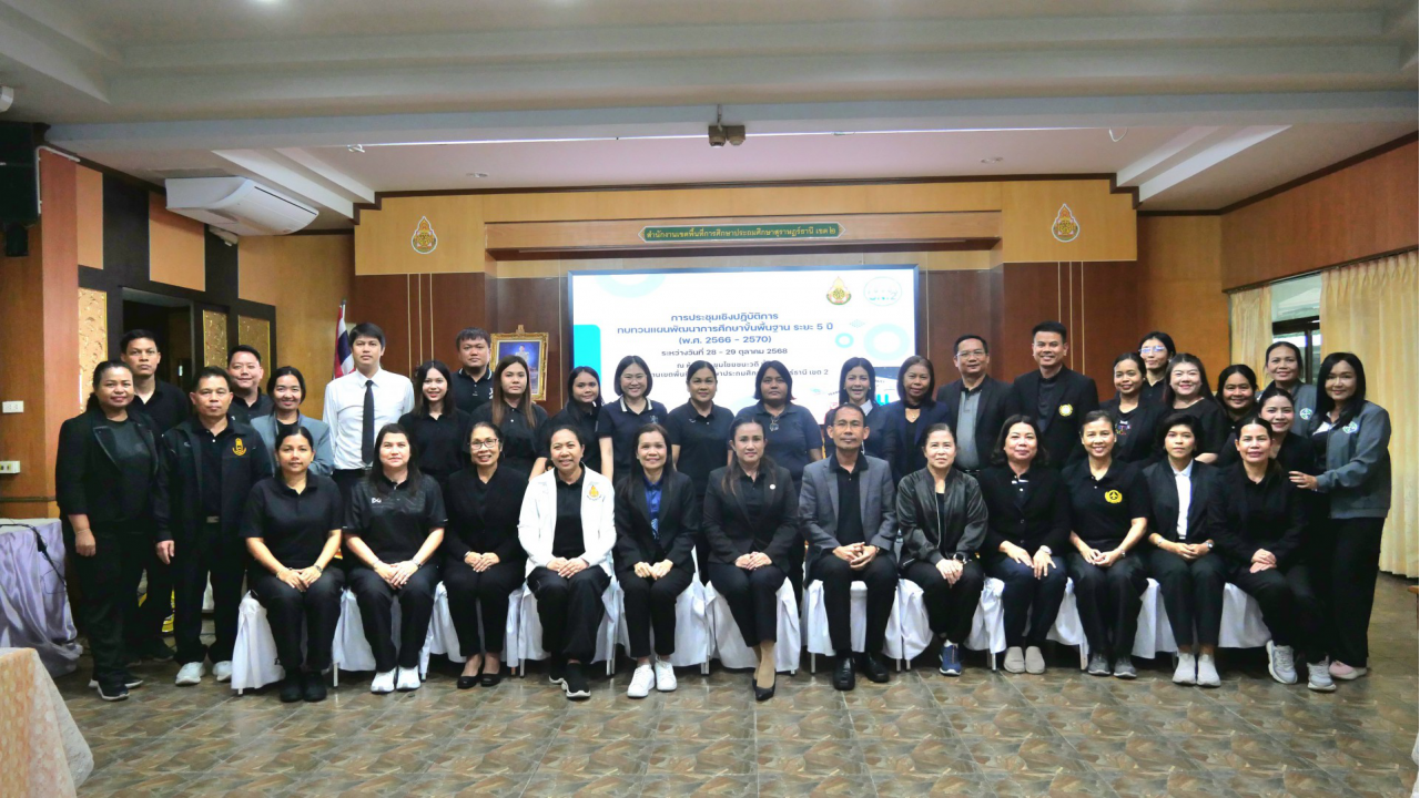 วันที่ 28 ตุลาคม พ.ศ. 2568 สำนักงานเขตพื้นที่การศึกษาประถมศึกษาสุราษฎร์ธานี เขต 2 จัดประชุมเชิงปฏิบัติการทบทวนแผนพัฒนาการศึกษาขั้นพื้นฐาน ระยะ 5 ปี (พ.ศ. 2566–2570) โดย นางสาวปวิชญา สินน้อย ผู้อำนวยการสำนักงานเขตพื้นที่การศึกษาประถมศึกษาสุราษฎร์ธานี เขต 2 เป็นประธานในพิธีเปิดการประชุม ก่อนเริ่มการประชุม ผู้เข้าร่วมประชุมได้ยืนสงบนิ่ง เพื่อแสดงความอาลัยถวายแด่ สมเด็จพระนางเจ้าสิริกิติ์ พระบรมราชินีนาถ พระบรมราชชนนีพันปีหลวง ด้วยความสำนึกในพระมหากรุณาธิคุณอย่างหาที่สุดมิได้ การประชุมเชิงปฏิบัติการในครั้งนี้ จัดขึ้นระหว่างวันที่ 28 – 29 ตุลาคม 2568 ณ ห้องประชุมไชยชนะวดี โดยมีผู้เข้าร่วมประชุมประกอบด้วย ผู้บริหารสำนักงานเขตพื้นที่การศึกษา ผู้อำนวยการกลุ่ม/หน่วย บุคลากรในสำนักงาน ผู้แทนผู้บริหารสถานศึกษา และผู้แทน ก.ต.ป.น. รวมทั้งสิ้น 34 คน การประชุมดังกล่าวจัดโดย กลุ่มนโยบายและแผน มีวัตถุประสงค์เพื่อทบทวนและปรับปรุงแผนพัฒนาการศึกษาขั้นพื้นฐาน (พ.ศ. 2566–2570) ให้สอดคล้องกับบริบทและนโยบายการศึกษาปัจจุบัน อีกทั้งเพื่อส่งเสริมกระบวนการมีส่วนร่วมของผู้มีส่วนได้ส่วนเสียในการวางแผนพัฒนาคุณภาพการศึกษา ซึ่งจะเป็นการเตรียมความพร้อมในการจัดทำแผนปฏิบัติการประจำปีงบประมาณ พ.ศ. 2569 ให้มีคุณภาพและสามารถนำไปสู่การปฏิบัติได้อย่างเป็นรูปธรรม . ภาพเพิ่มเติม : https://drive.google.com/drive/folders/10STfuS5i8XH2VCY0eJITZNL5Aoqstplm