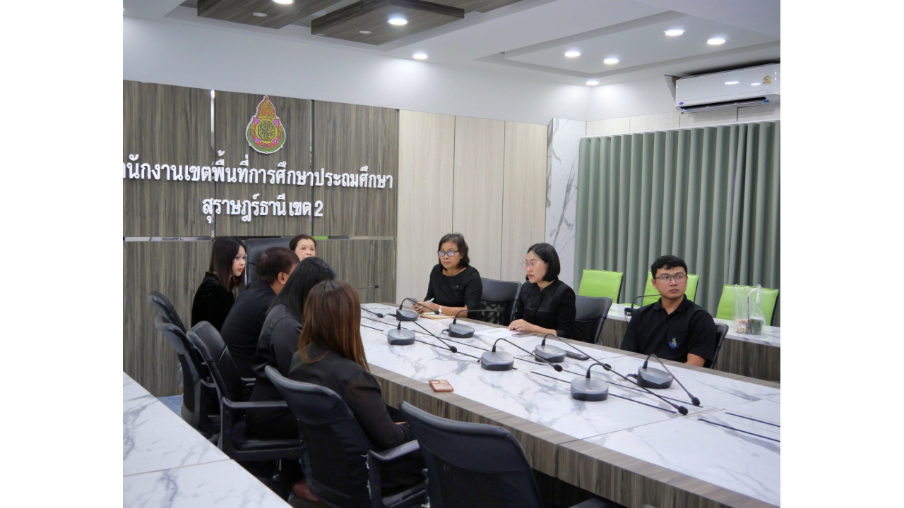 วันที่ 4 พฤศจิกายน พ.ศ. 2568 นางธัญกาญจน์ ภาสตโรจน์ รองผู้อำนวยการสำนักงานเขตพื้นที่การศึกษาฯ พร้อมด้วย นางณปภัช ชูประเสริฐ ผู้อำนวยการกลุ่มนโยบายและแผน และบุคลากรกลุ่มนโยบายและแผน ร่วมประชุมชี้แจงแนวทางการจัดตั้งงบประมาณรายจ่ายประจำปีงบประมาณ พ.ศ. 2570 งบลงทุน ค่าครุภัณฑ์ ที่ดินและสิ่งก่อสร้างของโรงเรียนคุณภาพ ผ่านระบบ Zoom Meeting จากสำนักงานคณะกรรมการการศึกษาขั้นพื้นฐาน ณ ห้องประชุมพุนพิน สำนักงานเขตพื้นที่การศึกษาประถมศึกษาสุราษฎร์ธานี เขต 2