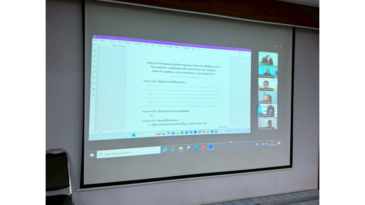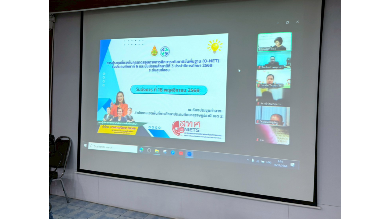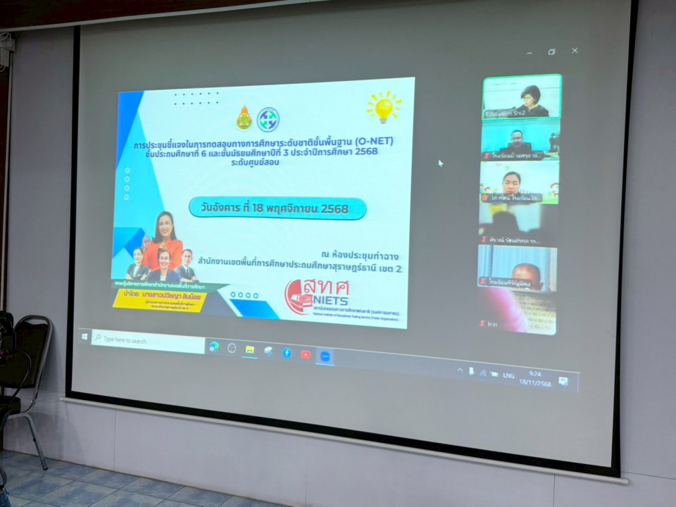 สำนักงานเขตพื้นที่การศึกษาประถมศึกษาสุราษฎร์ธานี เขต 2 ดำเนินการประชุมคณะทำงานดำเนินการทดสอบทางการศึกษาระดับชาติ ขั้นพื้นฐาน (O-NET) ประจำปี 2568 รูปแบบออนไลน์ผ่านระบบ Zoom ณ ห้องประชุมท่าฉาง สำนักงานเขตพื้นที่การศึกษาประถมศึกษาสุราษฎร์ธานี เขต 2