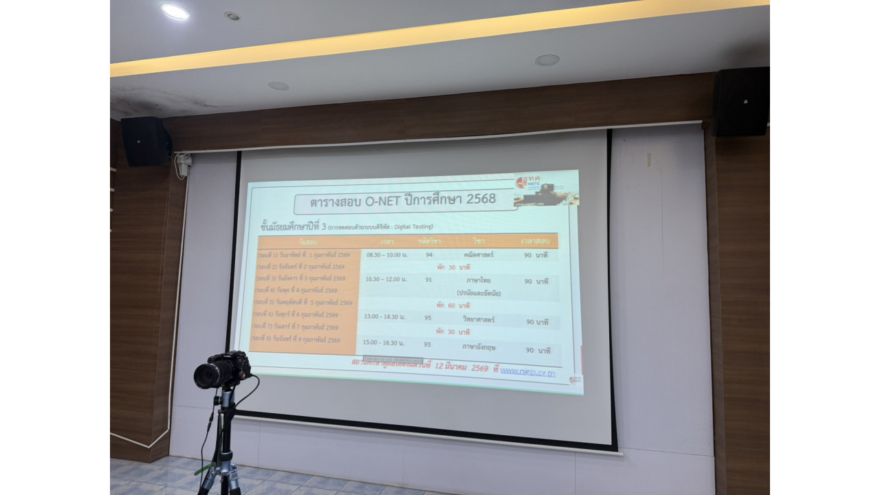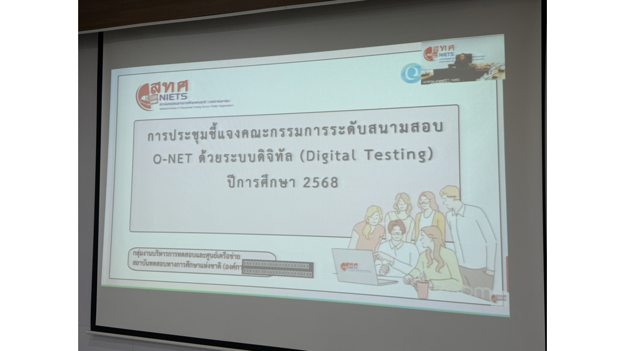 วันจันทร์ที่ 12 มกราคม 2569 -- นางสาวปวิชญา สินน้อย ผู้อำนวยการสำนักงานเขตพื้นที่การศึกษาประถมศึกษาสุราษฎร์ธานี เขต 2 มอบหมายให้ นายภูริพัฒน์ บุญมา รองผู้อำนวยการสำนักงานเขตพื้นที่การศึกษาประถมศึกษาสุราษฎร์ธานี เขต 2 เข้าร่วมการประชุมชี้แจงคณะกรรมการระดับสนามสอบการทดสอบทางการศึกษาระดับชาติขั้นพื้นฐาน (O-NET) ด้วยระบบดิจิทัล (Digital Testing) ปีการศึกษา 2568
