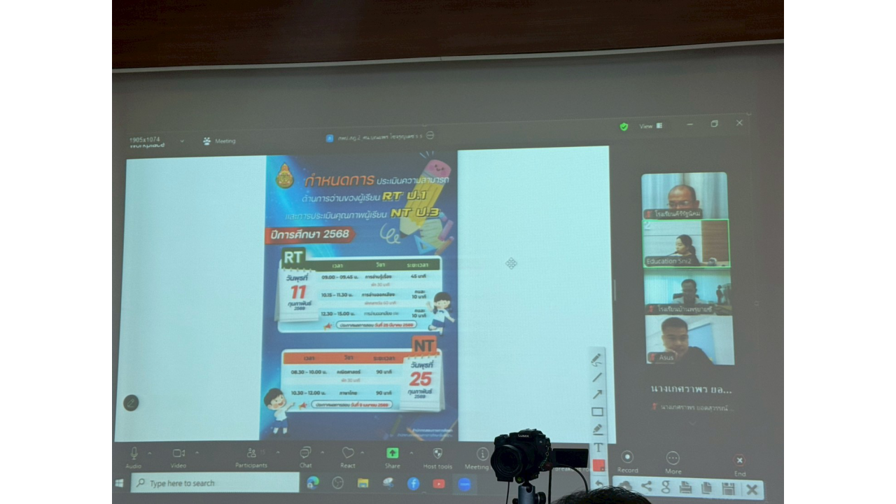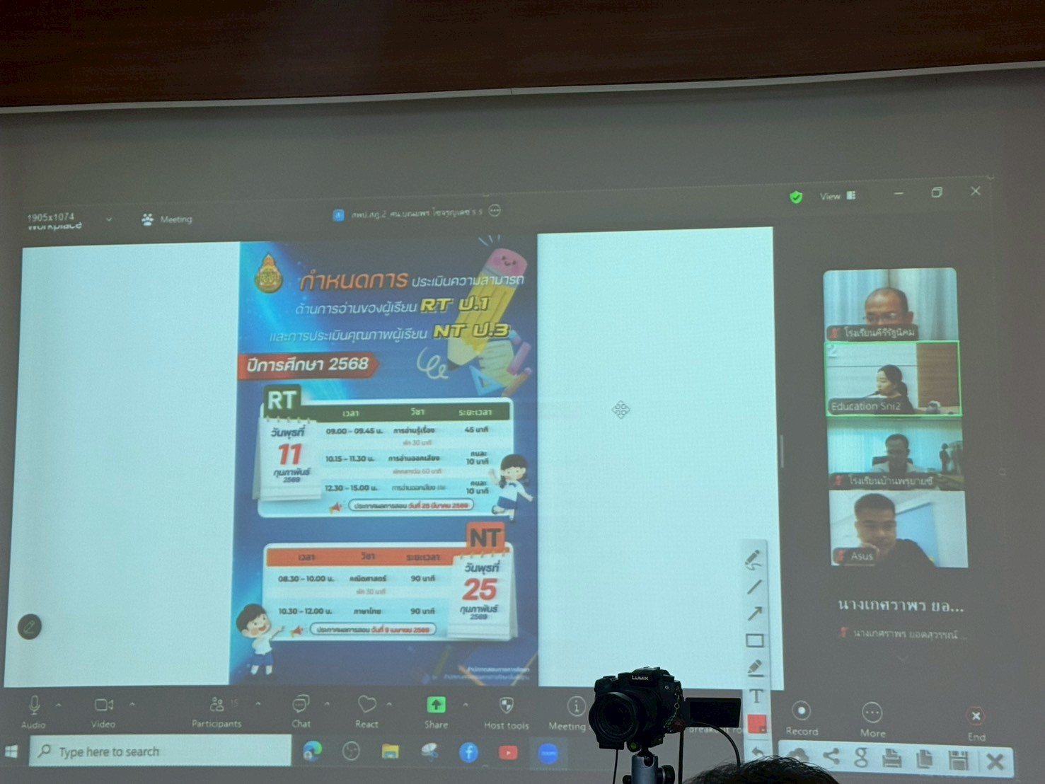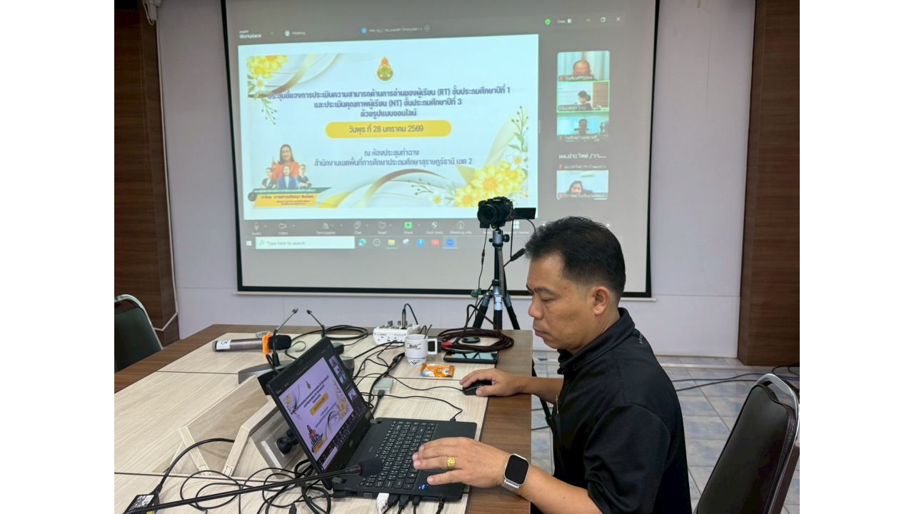 วันพุธที่ 28 มกราคม 2569 เวลา 09.00 น. -- นางสาวปวิชญา สินน้อย ผู้อำนวยการสำนักงานเขตพื้นที่การศึกษาประถมศึกษาสุราษฎร์ธานี เขต 2 มอบหมายให้ นายภูริพัฒน์ บุญมา รองผู้อำนวยการสำนักงานเขตพื้นที่การศึกษาประถมศึกษาสุราษฎร์ธานี เขต 2 เป็นประธานการประชุมชี้แจงการประเมินความสามารถด้านการอ่านของผู้เรียน (RT) ชั้นประถมศึกษาปีที่ 1 และการประเมินคุณภาพผู้เรียน (NT) ชั้นประถมศึกษาปีที่ 3 ปีการศึกษา 2568 ด้วยรูปแบบออนไลน์ ผ่านระบบ Zoom Meeting