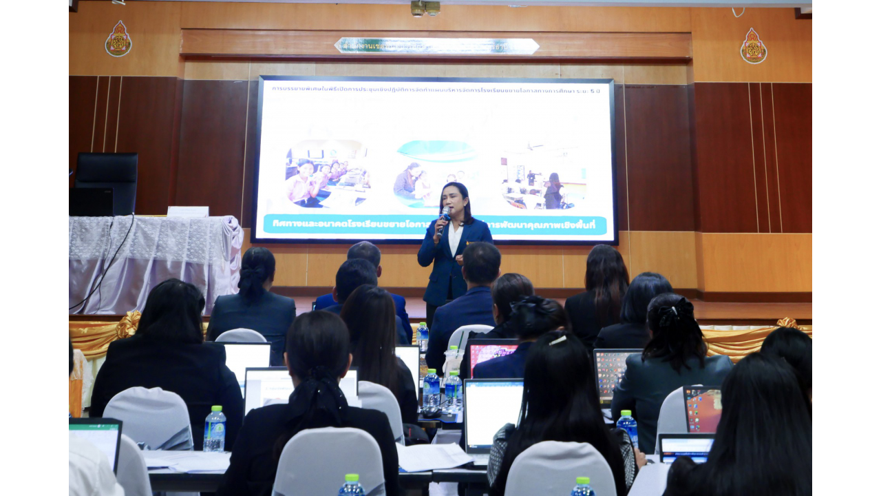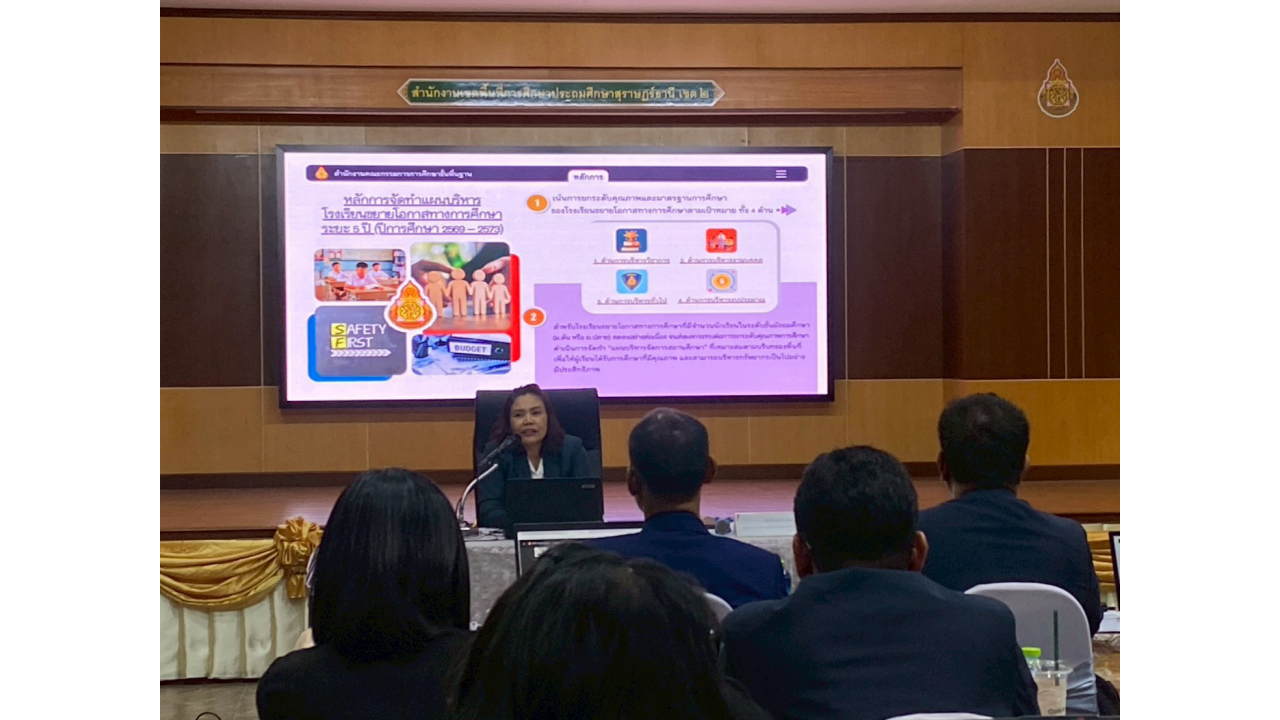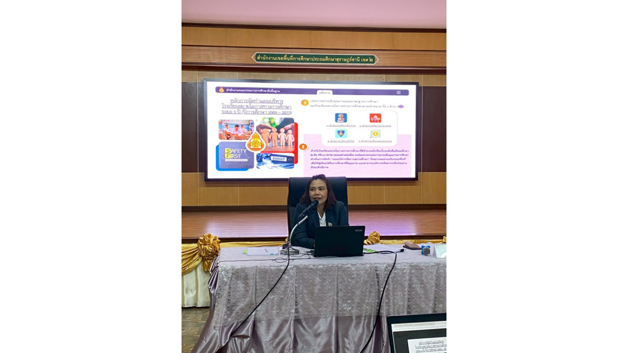 วันพฤหัสบดีที่ 12 กุมภาพันธ์ 2569 นางสาวปวิชญา สินน้อย ผู้อำนวยการสำนักงานเขตพื้นที่การศึกษาประถมศึกษาสุราษฎร์ธานี เขต 2 เป็นประธานในพิธีเปิดและมอบนโยบายในการประชุมเชิงปฏิบัติการจัดทำแผนบริหารจัดการโรงเรียนขยายโอกาสทางการศึกษา ระยะ 5 ปี (ปีการศึกษา 2569 – 2573) ณ ห้องประชุมไชยชนะวดี สำนักงานเขตพื้นที่การศึกษาประถมศึกษาสุราษฎร์ธานี เขต 2 สำหรับการประชุมเชิงปฏิบัติการในครั้งนี้ มีวัตถุประสงค์เพื่อให้ผู้บริหารและคณะครูจากโรงเรียนขยายโอกาสทางการศึกษาในสังกัด ทั้งสิ้น 46 แห่ง ได้ร่วมกันวิเคราะห์ข้อมูลพื้นฐานและสถานะปัจจุบันของสถานศึกษา เพื่อนำไปสู่การกำหนดทิศทางและจัดทำแนวทางการบริหารจัดการที่สอดคล้องกับสภาวะการเปลี่ยนแปลงในปัจจุบัน ให้เกิดแผนพัฒนาที่ชัดเจนและมีประสิทธิภาพ