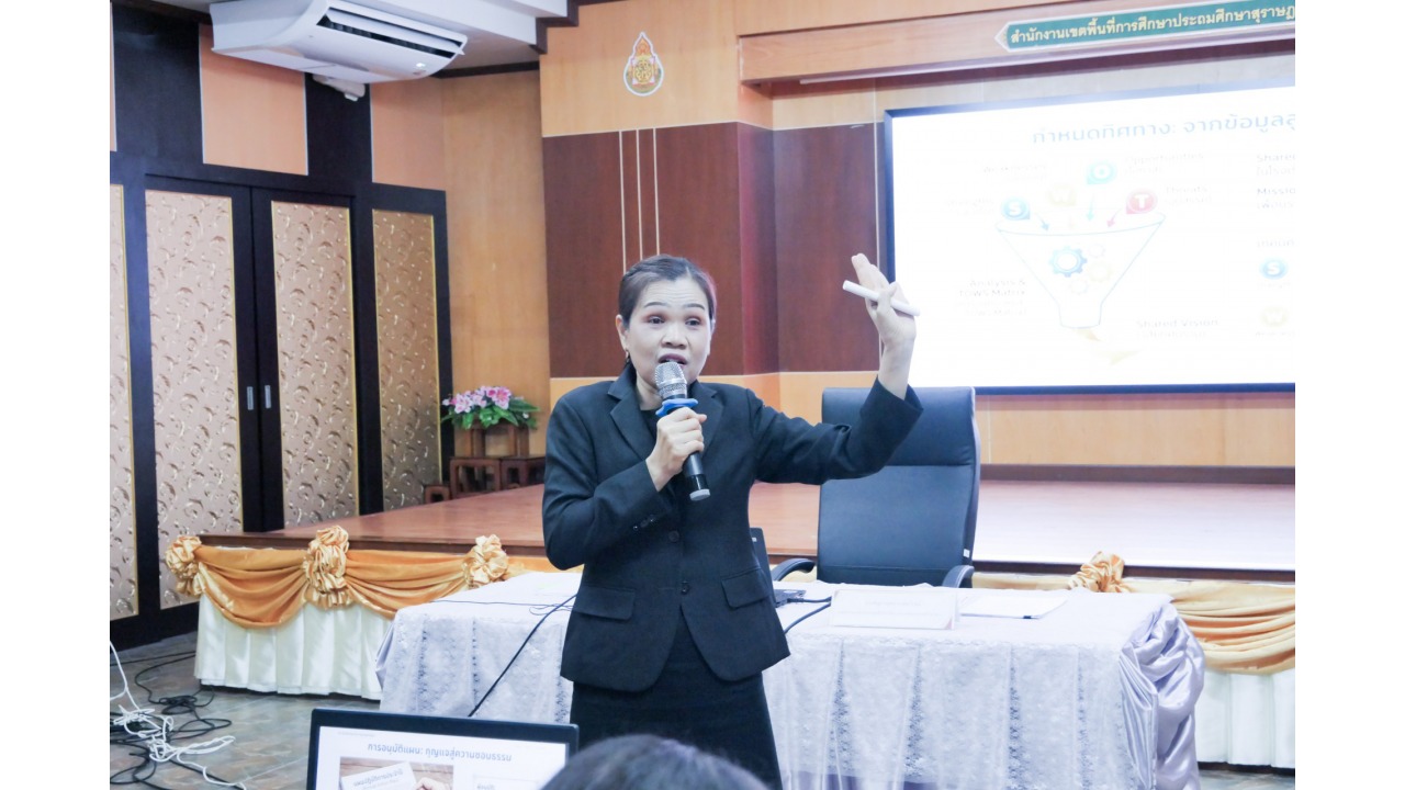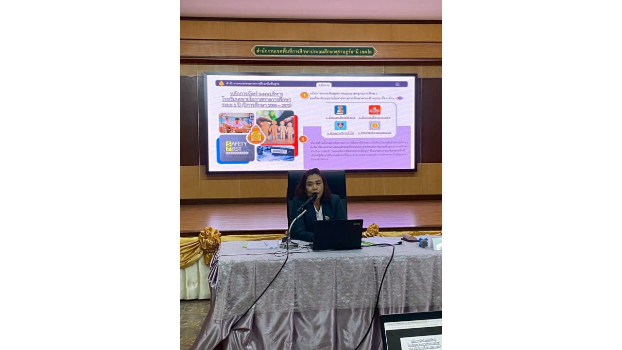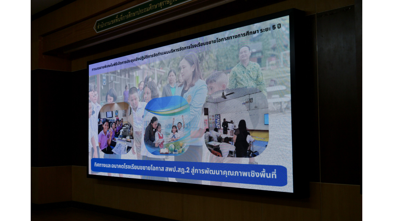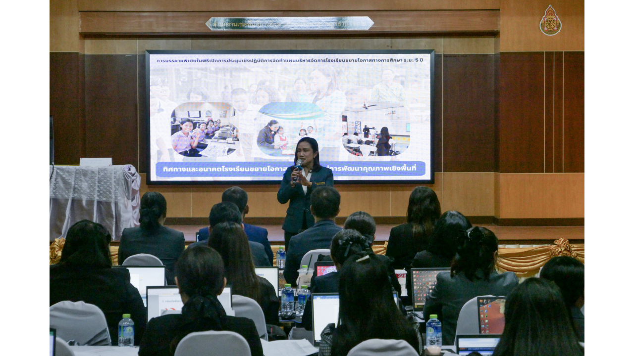 วันพฤหัสบดีที่ 12 กุมภาพันธ์ 2569 นางสาวปวิชญา สินน้อย ผู้อำนวยการสำนักงานเขตพื้นที่การศึกษาประถมศึกษาสุราษฎร์ธานี เขต 2 เป็นประธานในพิธีเปิดและมอบนโยบายในการประชุมเชิงปฏิบัติการจัดทำแผนบริหารจัดการโรงเรียนขยายโอกาสทางการศึกษา ระยะ 5 ปี (ปีการศึกษา 2569 – 2573) ณ ห้องประชุมไชยชนะวดี สำนักงานเขตพื้นที่การศึกษาประถมศึกษาสุราษฎร์ธานี เขต 2 สำหรับการประชุมเชิงปฏิบัติการในครั้งนี้ มีวัตถุประสงค์เพื่อให้ผู้บริหารและคณะครูจากโรงเรียนขยายโอกาสทางการศึกษาในสังกัด ทั้งสิ้น 46 แห่ง ได้ร่วมกันวิเคราะห์ข้อมูลพื้นฐานและสถานะปัจจุบันของสถานศึกษา เพื่อนำไปสู่การกำหนดทิศทางและจัดทำแนวทางการบริหารจัดการที่สอดคล้องกับสภาวะการเปลี่ยนแปลงในปัจจุบัน ให้เกิดแผนพัฒนาที่ชัดเจนและมีประสิทธิภาพ