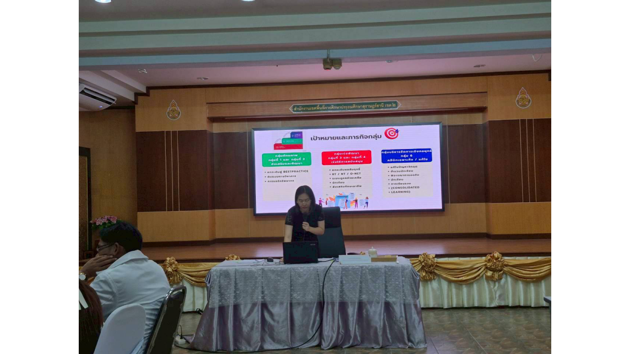 ในการนี้ ได้รับเกียรติจากรองผู้อำนวยการสำนักงานเขตพื้นที่การศึกษาประถมศึกษาสุราษฎร์ธานี เขต 2 ร่วมเป็นวิทยากรบรรยายให้ความรู้ในหัวข้อสำคัญ ดังนี้ 1. นางธัญกาญจน์ ภาสตโรจน์ บรรยายเรื่อง "การจัดทำแผนสถานศึกษาและการเขียนโครงการสู่การปฏิบัติ" 2. นางสาวริยาภรณ์ ยงคณะ ชี้แจงเรื่อง "เกณฑ์การจำแนกสถานศึกษาตามระดับศักยภาพ" 3. นายภูริพัฒน์ บุญมา ชี้แจง "แนวทางการพัฒนา 4 ด้านหลัก" ได้แก่ ด้านวิชาการ, ด้านการบริหารงานบุคคล, ด้านการบริหารทั่วไป และด้านงบประมาณ