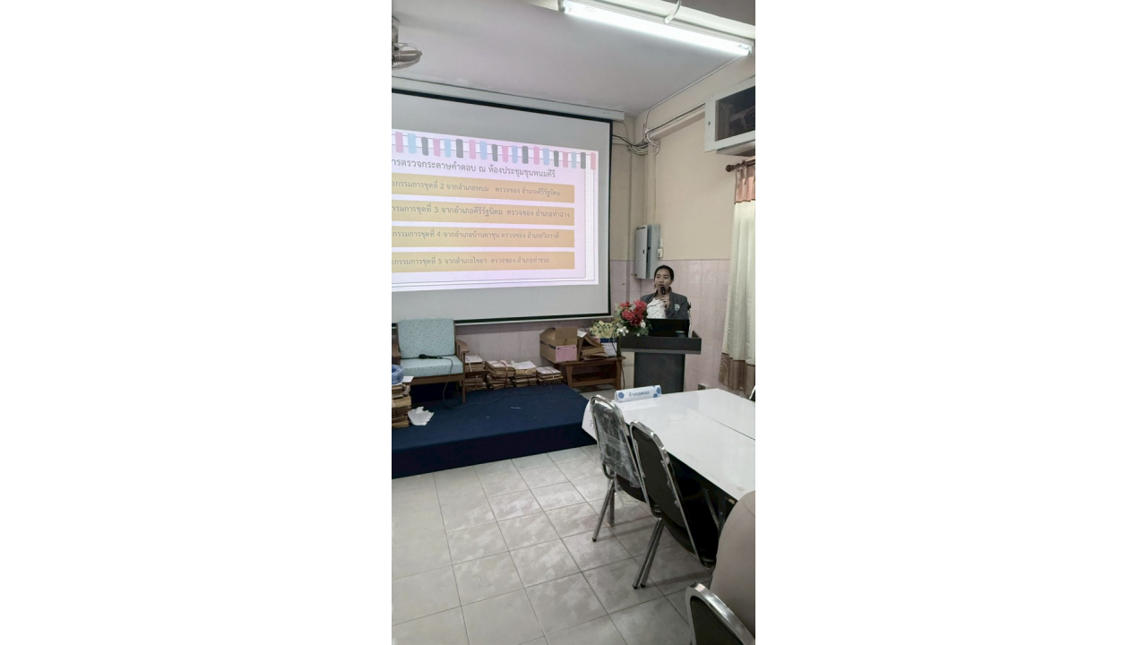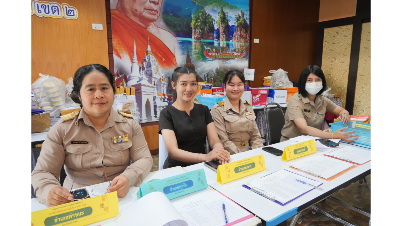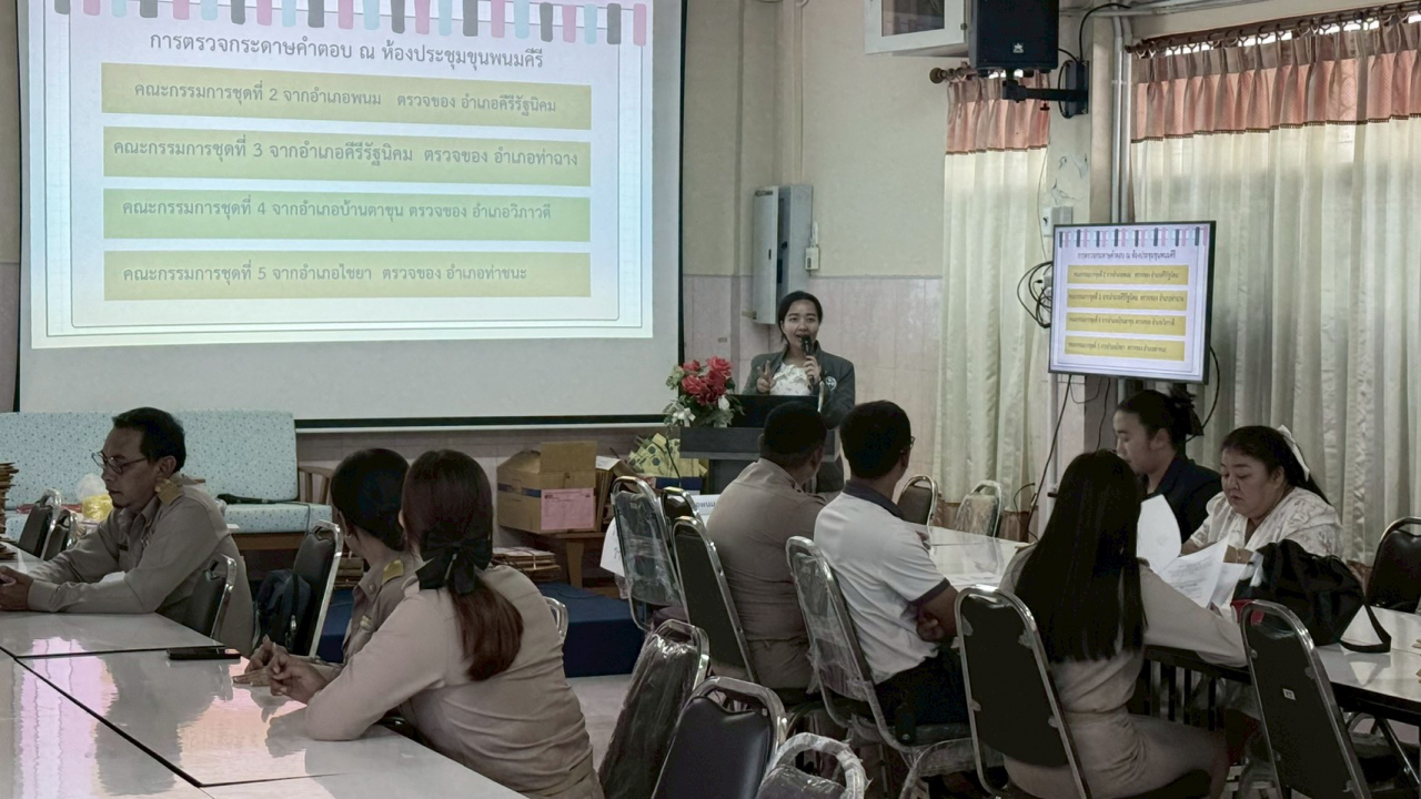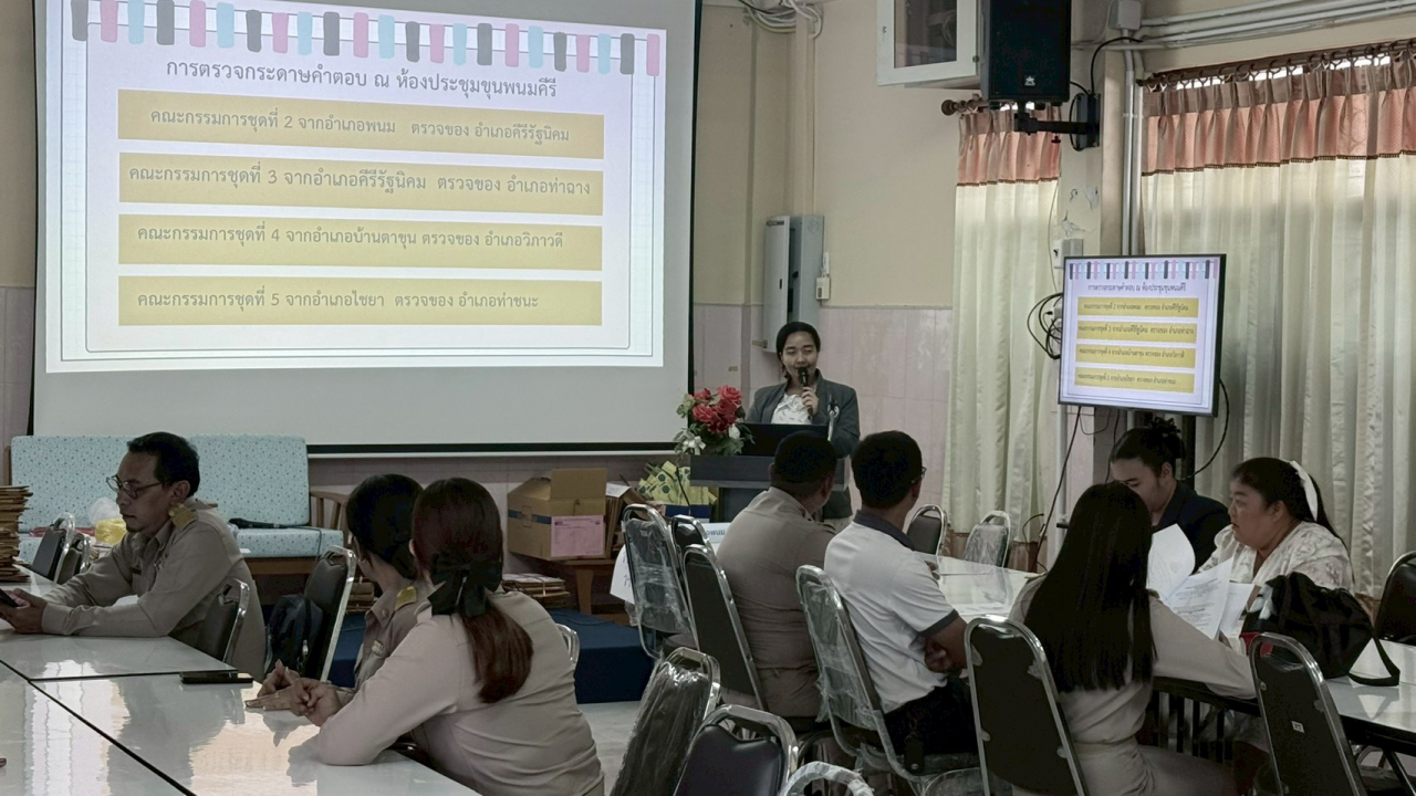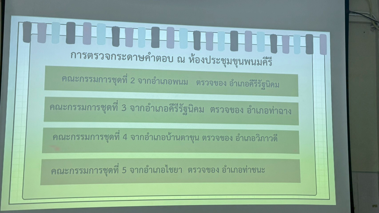 2. ห้องประชุมขุนพนมคีรี: คณะกรรมการตรวจกระดาษคำตอบชุดที่ 2 (อ.พนม), ชุดที่ 3 (อ.คีรีรัฐนิคม), ชุดที่ 4 (อ.บ้านตาขุน) และชุดที่ 5 (อ.ไชยา)