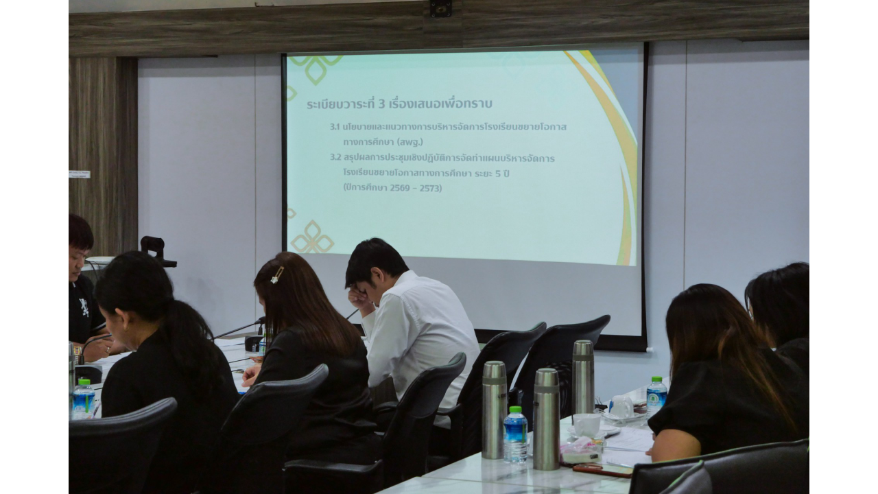 วันที่ 5 มีนาคม 2569 นางสาวปวิชญา สินน้อย ผู้อำนวยการสำนักงานเขตพื้นที่การศึกษาประถมศึกษาสุราษฎร์ธานี เขต 2 มอบหมายให้ นางสาวริยาภรณ์ ยงคณะ รองผู้อำนวยการ สพป.สุราษฎร์ธานี เขต 2 เป็นประธาน ในการประชุมคณะกรรมการจัดทำแผนบริหารโรงเรียนขยายโอกาสทางการศึกษา ระยะ 5 ปี (ปีการศึกษา 2569-2573) ครั้งที่ 1/2569 ณ ห้องประชุมพุนพิน