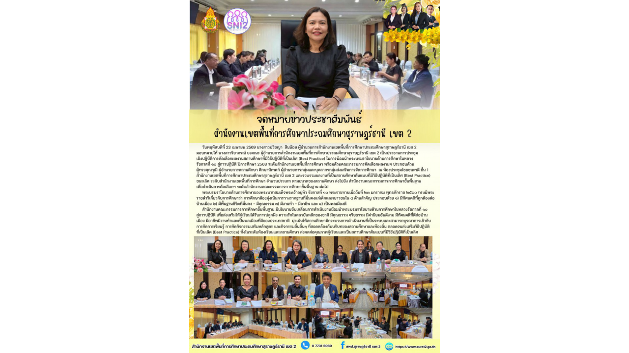 วันพฤหัสบดีที่ 23 เมษายน 2569 นางสาวปวิชญา สินน้อย ผู้อำนวยการสำนักงานเขตพื้นที่การศึกษาประถมศึกษาสุราษฎร์ธานี เขต 2