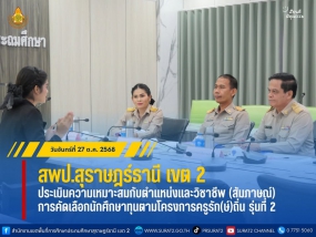 วันจันทร์ที่ 10 มิถุนายน 2567 ดร.สุชาดา ลิ่มสวัสดิ์ ผู้อำนวยการสำนักงานเขตพื้นที่การศึกษาประถมศึกษาสุราษฎร์ธานี เขต ๒ มอบหมายให้นางสงวนรัตน์ คงนุ่ม รองผู้อำนวยการสำนักงานเขตพื้นที่การศึกษาประถมศึกษาสุราษฎร์ธานี เขต 2 พร้อมด้วยนางสาวญัญลักษณ์ มณีฉาย นักวิชาการคอมพิวเตอร์ชำนาญการ ดำเนินการประชุมซักซ้อมความเข้าใจในการตอบแบบวัดการรับรู้ผู้มีส่วนได้ส่วนเสียภายนอก EIT ตามประเด็นการประเมิน ผ่านการประชุมทางไกลระบบ (ZOOM Meeting) โดยมีผู้บริหารโรงเรียนและครูผู้รับผิดชอบเข้าร่วมประชุม ณ ห้องประชุมพุนพิน สำนักงานเขตพื้นที่การศึกษาประถมศึกษาสุราษฎร์ธานี เขต 2