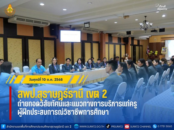 สพป.สุราษฎร์ธานี เขต 2 ถ่ายทอดวิสัยทัศน์และแนวทางการบริหารแก่ครูผู้ฝึกประสบการณ์วิชาชีพด้านการบริหารการศึกษา