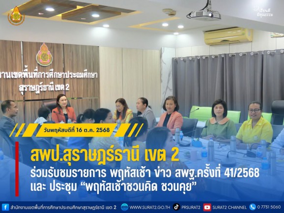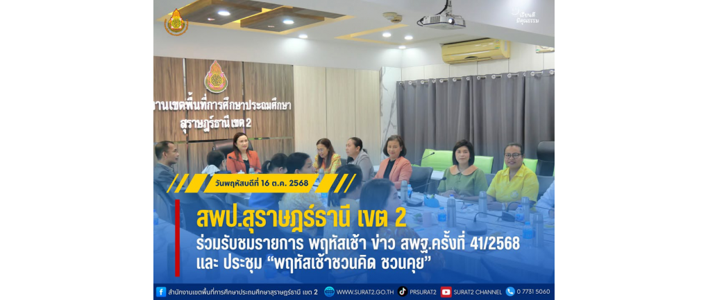 สพป.สุราษฎร์ธานี เขต 2 ร่วมรับชมรายการ พฤหัสเช้า ข่าว สพฐ.ครั้งที่ 41/2568 และ ประชุม “พฤหัสเช้าชวนคิด ชวนคุย”