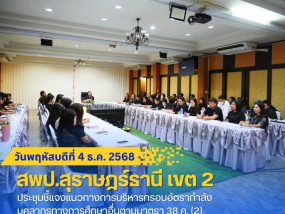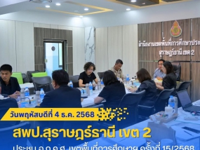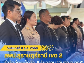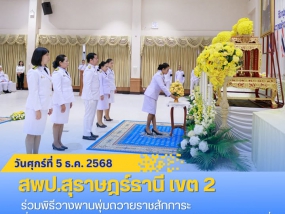 สพป.สุราษฎร์ธานี เขต ๒ ร่วมพิธีสวดมนต์ถวายพระพรชัยมงคล เนื่องในโอกาสวันคล้ายวันประสูติ สมเด็จพระเจ้าลูกเธอ เจ้าฟ้าพัชรกิติยาภา นเรนทิราเทพยวดี กรมหลวงราชสาริณีสิริพัชร มหาวัชรราชธิดา . 7 ธันวาคม 2568เวลา 09.09 น. — นางสาวปวิชญา สินน้อย ผู้อำนวยการสำนักงานเขตพื้นที่การศึกษาประถมศึกษาสุราษฎร์ธานี เขต 2 ได้ มอบหมายให้บุคลากรในสังกัดเข้าร่วมพิธีเพื่อแสดงความจงรักภักดี และถวายพระพรชัยมงคลแด่สมเด็จพระเจ้าลูกเธอ เจ้าฟ้าพัชรกิติยาภาฯ ณ วัดธรรมบูชา พระอารามหลวง อำเภอเมืองฯ จังหวัดสุราษฎร์ธานี จังหวัดสุราษฎร์ธานี ได้จัด พิธีสวดมนต์ถวายพระพรชัยมงคล เนื่องในโอกาสวันคล้ายวันประสูติ สมเด็จพระเจ้าลูกเธอ เจ้าฟ้าพัชรกิติยาภา นเรนทิราเทพยวดี กรมหลวงราชสาริณีสิริพัชร มหาวัชรราชธิดา ประจำปี 2568 . โดย นายจุมพฏ วรรณฉัตรสิริ ผู้ว่าราชการจังหวัดสุราษฎร์ธานี เป็นประธานในพิธี และมีรองผู้ว่าราชการจังหวัด หัวหน้าส่วนราชการ ข้าราชการ พุทธศาสนิกชน และประชาชนเข้าร่วม พิธีเริ่มจากประธานในพิธีจุดธูปเทียนบูชาพระรัตนตรัย ถวายดอกไม้ธูปเทียนแพ เบื้องหน้าพระรูปฯ จากนั้นพระสงฆ์ 10 รูป เจริญพระพุทธมนต์ ผู้เข้าร่วมพิธีต่างตั้งจิตอธิษฐานขอให้พระองค์ทรงมีพระพลานามัยแข็งแรงสมบูรณ์ และหายจากพระอาการประชวรโดยเร็ววัน การจัดพิธีครั้งนี้มีวัตถุประสงค์เพื่อรวมใจประชาชนชาวไทยในการแสดงความจงรักภักดี และขอให้พระองค์ทรงเป็นมิ่งขวัญแก่พสกนิกรชาวไทยสืบไป
