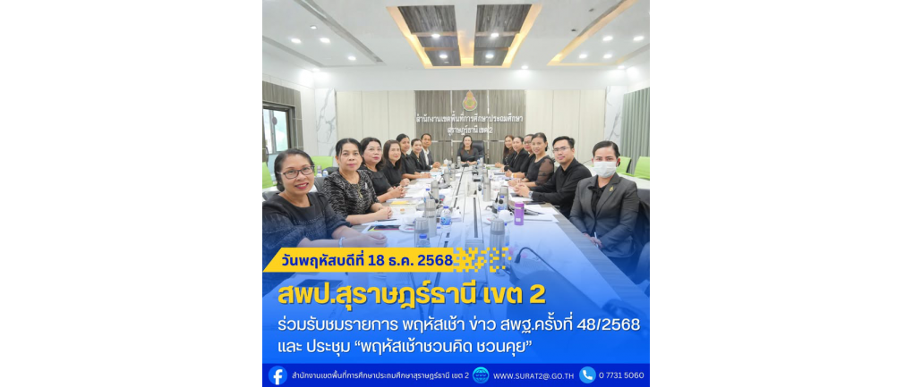 สพป.สุราษฎร์ธานี เขต 2 ร่วมรับชมรายการ พฤหัสเช้า ข่าว สพฐ.ครั้งที่ 48/2568 และ ประชุม “พฤหัสเช้าชวนคิด ชวนคุย”