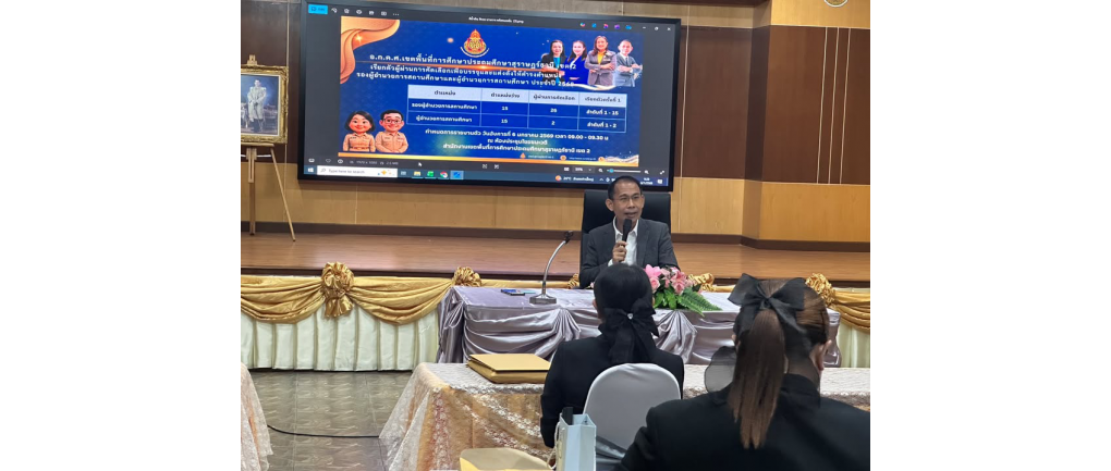 สพป.สุราษฎร์ธานี เขต 2 รับรายงานตัวผู้ผ่านการคัดเลือกเพื่อบรรจุและแต่งตั้งให้ดำรงตำแหน่งผู้บริหารสถานศึกษา ประจำปี 2568 พร้อมมอบนโยบายการปฏิบัติราชการ . วันอังคารที่ 6 มกราคม 2569 เวลา 09.00 น. -- นางสาวปวิชญา สินน้อย ผู้อำนวยการสำนักงานเขตพื้นที่การศึกษาประถมศึกษาสุราษฎร์ธานี เขต 2 มอบหมายให้ นายภูริพัฒน์ บุญมา รองผู้อำนวยการสำนักงานเขตพื้นที่การศึกษาประถมศึกษาสุราษฎร์ธานี เขต 2 เป็นประธานในการรับรายงานตัว การเลือกสถานศึกษา และปฐมนิเทศผู้ผ่านการคัดเลือกเพื่อบรรจุและแต่งตั้งให้ดำรงตำแหน่งข้าราชการครูและบุคลากรทางการศึกษา ตำแหน่งผู้บริหารสถานศึกษา ประจำปี 2568 ณ ห้องประชุมไชยชนะวดี สำนักงานเขตพื้นที่การศึกษาประถมศึกษาสุราษฎร์ธานี เขต 2 โดยในครั้งนี้ อ.ก.ค.ศ. เขตพื้นที่การศึกษาประถมศึกษาสุราษฎร์ธานี เขต 2 ได้ดำเนินการเรียกตัวผู้ผ่านการคัดเลือกมารายงานตัวเพื่อบรรจุและแต่งตั้ง ประกอบด้วย ตำแหน่งรองผู้อำนวยการสถานศึกษา จำนวน 15 ราย (ลำดับที่ 1 - 15) และตำแหน่งผู้อำนวยการสถานศึกษา จำนวน 2 ราย (ลำดับที่ 1 - 2) โอกาสนี้ นายภูริพัฒน์ บุญมา ได้กล่าวแสดงความยินดีพร้อมทั้งมอบนโยบายและแนวทางการปฏิบัติราชการแก่ผู้บริหารสถานศึกษาใหม่ เพื่อให้การบริหารจัดการสถานศึกษาเป็นไปอย่างมีประสิทธิภาพ สอดคล้องกับนโยบายของสำนักงานคณะกรรมการการศึกษาขั้นพื้นฐาน และยึดมั่นในหลักธรรมาภิบาลต่อไป