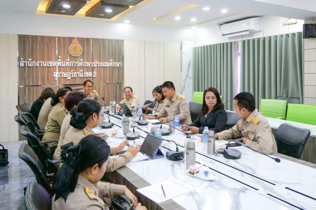 สพป.สุราษฎร์ธานี เขต 2 ประชุมปรับปรุงเกณฑ์และยกร่างตัวชี้วัดการประเมินผลการปฏิบัติงานผู้บริหารสถานศึกษา ครั้งที่ 1/2569 . วันจัยทร์ที่ 12 มกราคม 2569 เวลา 13.30 น. -- นางสาวปวิชญา สินน้อย ผู้อำนวยการสำนักงานเขตพื้นที่การศึกษาประถมศึกษาสุราษฎร์ธานี เขต 2 มอบหมายให้ นายภูริพัฒน์ บุญมา รองผู้อำนวยการสำนักงานเขตพื้นที่การศึกษาประถมศึกษาสุราษฎร์ธานี เขต 2 เป็นประธานการประชุมคณะทำงานปรับปรุงเกณฑ์พิจารณาการมีส่วนร่วมในการพัฒนาคุณภาพการศึกษาของสถานศึกษา และยกร่างตัวชี้วัดการประเมินผลการปฏิบัติงานของข้าราชการครูและบุคลากรทางการศึกษา ตำแหน่งผู้อำนวยการสถานศึกษา ครั้งที่ 1/2569 ณ ห้องประชุมพุนพิน ชั้น 3 สำนักงานเขตพื้นที่การศึกษาประถมศึกษาสุราษฎร์ธานี เขต 2 การประชุมในครั้งนี้ มีวัตถุประสงค์เพื่อพิจารณาปรับปรุงเกณฑ์การพิจารณาการมีส่วนร่วมในการพัฒนาคุณภาพการศึกษาของสถานศึกษา สังกัดสำนักงานเขตพื้นที่การศึกษาประถมศึกษาสุราษฎร์ธานี เขต 2 ซึ่งใช้ประกอบการประเมินผลการปฏิบัติงานฯ (องค์ประกอบที่ 2: การประเมินการมีส่วนร่วมในการพัฒนาการศึกษา 10 คะแนน) และเพื่อใช้ประกอบการพิจารณาจัดสรรวงเงินเลื่อนเงินเดือน ทั้งนี้ คณะทำงานได้ร่วมกันยกร่างตัวชี้วัดการประเมินผลการปฏิบัติงานของผู้อำนวยการสถานศึกษาใหม่ ให้มีความเหมาะสม เป็นธรรม และสอดคล้องกับตัวชี้วัดของสำนักงานคณะกรรมการการศึกษาขั้นพื้นฐาน (สพฐ.) รวมถึงนโยบายของสำนักงานเขตพื้นที่การศึกษาประถมศึกษาสุราษฎร์ธานี เขต 2 เพื่อให้การประเมินผลเป็นไปอย่างมีประสิทธิภาพสูงสุด