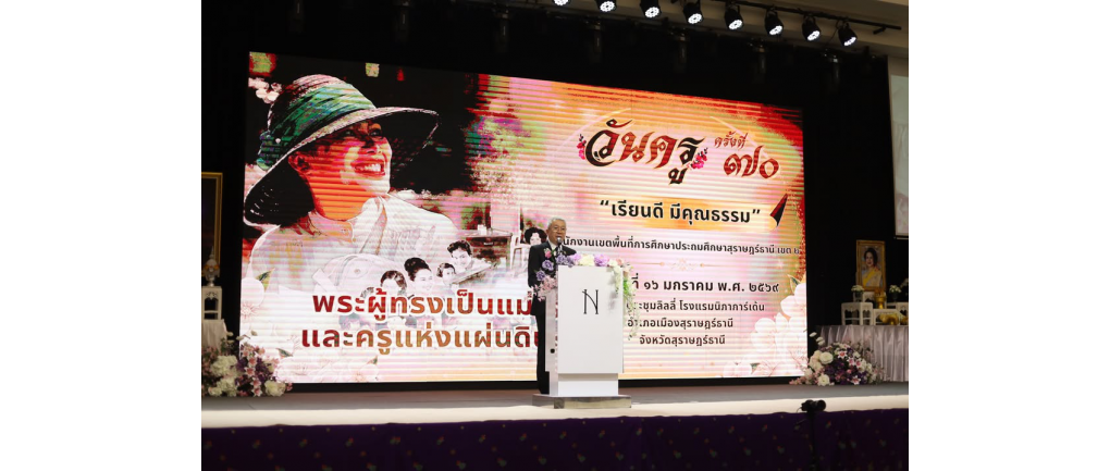 สพป.สุราษฎร์ธานี เขต 2 จัดงานวันครู ครั้งที่ 70 ประจำปี 2569 ภายใต้แนวคิด พระผู้ทรงเป็นแม่และครูแห่งแผ่นดิน มุ่งเชิดชูเกียรติบูรพาจารย์และบุคลากรทางการศึกษา . วันศุกร์ที่ 16 มกราคม 2569 – สำนักงานเขตพื้นที่การศึกษาประถมศึกษาสุราษฎร์ธานี เขต 2 จัดงานวันครู ครั้งที่ 70 ประจำปีพุทธศักราช 2569 เพื่อรำลึกถึงพระคุณบูรพาจารย์และยกย่องเชิดชูเกียรติผู้ประกอบวิชาชีพทางการศึกษา โดยได้รับเกียรติจาก นายบันดาล สถิรชวาล รองผู้ว่าราชการจังหวัดสุราษฎร์ธานี เป็นประธานในพิธี พร้อมด้วย นายชูศักดิ์ ชูช่วย ประธาน อ.ก.ค.ศ. เขตพื้นที่การศึกษาประถมศึกษาสุราษฎร์ธานี เขต 2, นางวสุ ประดิษฐพร นายกเทศมนตรีเมืองท่าข้าม และ นายชัชชัย มณี ปลัดอาวุโสอำเภอพุนพิน (เจ้าพนักงานปกครองชำนาญการพิเศษ) ให้เกียรติเข้าร่วมงาน โดยมี นางสาวปวิชญา สินน้อย ผู้อำนวยการสำนักงานเขตพื้นที่การศึกษาประถมศึกษาสุราษฎร์ธานี เขต 2 เป็นผู้กล่าวรายงานวัตถุประสงค์การจัดงาน ณโรงแรมนิภาการ์เด้น อำเภอเมือง จังหวัดสุราษฎร์ธานี การจัดงานวันครูในปีนี้จัดขึ้นภายใต้หัวข้อแก่นสาระ พระผู้ทรงเป็นแม่และครูแห่งแผ่นดิน โดยมีวัตถุประสงค์เพื่อเทิดพระเกียรติสมเด็จพระนางเจ้าสิริกิติ์ พระบรมราชินีนาถ พระบรมราชชนนีพันปีหลวง และเพื่อประกอบพิธีระลึกถึงพระคุณบูรพาจารย์ ส่งเสริมความสามัคคีธรรมระหว่างครู และเชิดชูเกียรติผู้ประกอบวิชาชีพทางการศึกษาที่ทำคุณประโยชน์ต่อวงการศึกษา กิจกรรมในช่วงเช้าเริ่มต้นเวลา 07.00 น. ด้วยพิธีทำบุญตักบาตรข้าวสารอาหารแห้งแด่พระภิกษุสงฆ์ จำนวน 9 รูป จากนั้นเข้าสู่พิธีการหลัก โดยนายบันดาล สถิรชวาล รองผู้ว่าราชการจังหวัดสุราษฎร์ธานี ประธานในพิธี ได้จุดธูปเทียนบูชาพระรัตนตรัย สักการะพระบรมสาทิสลักษณ์พระบาทสมเด็จพระมงกุฎเกล้าเจ้าอยู่หัว รัชกาลที่ 6 และถวายความเคารพพระบรมฉายาลักษณ์พระบาทสมเด็จพระเจ้าอยู่หัว รัชกาลที่ 10 พร้อมทั้งประกอบพิธีน้อมรำลึกในพระมหากรุณาธิคุณ สมเด็จพระนางเจ้าสิริกิติ์ พระบรมราชินีนาถ พระบรมราชชนนีพันปีหลวง โดยการวางพวงมาลัยสีขาว และนำผู้เข้าร่วมงานยืนสงบนิ่งเป็นเวลา 93 วินาที ในส่วนของพิธีบูชาบูรพาจารย์ ได้มีการอ่านโองการอัญเชิญบูรพาจารย์โดย นางกรกนก มุกดา ครูโรงเรียนตาขุน และการสวดคำฉันท์ระลึกถึงพระคุณบูรพาจารย์ โดยนายธนนนท์ ลดารัตน์ ครูอาวุโสนอกประจำการ จากนั้น นายกเทศมนตรีเมืองท่าข้าม ได้ให้เกียรติอ่านสารนายกรัฐมนตรีเนื่องในโอกาสวันครู ประจำปี 2569 และมีการนำกล่าวคำปฏิญาณตนของครูและบุคลากรทางการศึกษา ไฮ