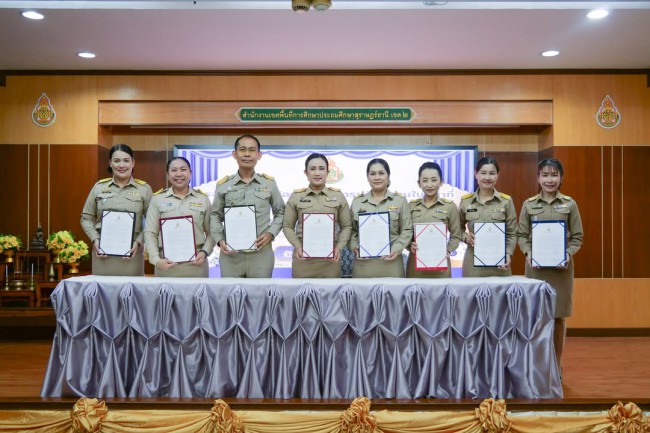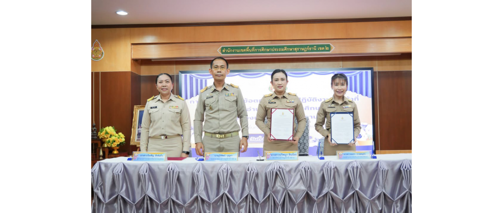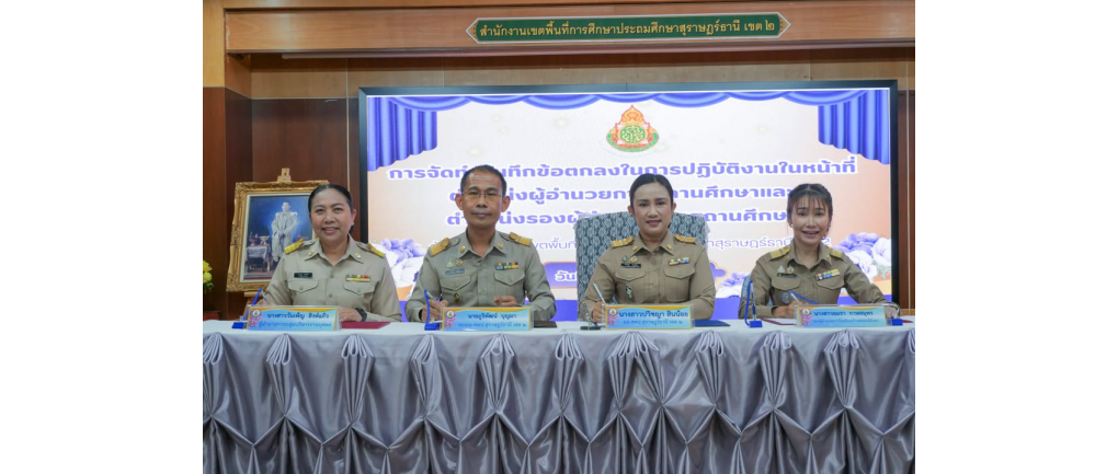 สพป.สุราษฎร์ธานี เขต 2 จัดพิธีลงนามบันทึกข้อตกลง (MOU) และประชุมสัมมนาเสริมสร้างประสิทธิภาพการปฏิบัติงานผู้บริหารสถานศึกษา วันจันทร์ที่ 2 กุมภาพันธ์ 2569 – นางสาวปวิชญา สินน้อย ผู้อำนวยการสำนักงานเขตพื้นที่การศึกษาประถมศึกษาสุราษฎร์ธานี เขต 2 เป็นประธานในการประชุมสัมมนาเสริมสร้างความรู้ความเข้าใจบทบาทหน้าที่ และจัดทำบันทึกข้อตกลงในการปฏิบัติงานในหน้าที่ (MOU) สำหรับตำแหน่งผู้อำนวยการสถานศึกษาและรองผู้อำนวยการสถานศึกษา ณ ห้องประชุมไชยชนะวดี สำนักงานเขตพื้นที่การศึกษาประถมศึกษาสุราษฎร์ธานี เขต 2 สำหรับการประชุมในครั้งนี้ มีวัตถุประสงค์เพื่อสร้างความรู้ความเข้าใจที่ชัดเจนเกี่ยวกับบทบาทและหน้าที่ในการบริหารสถานศึกษา ตลอดจนการลงนามบันทึกข้อตกลงในการปฏิบัติงานตามหลักเกณฑ์ที่ ก.ค.ศ. กำหนด เพื่อให้ผู้บริหารสามารถขับเคลื่อนนโยบายสู่การปฏิบัติได้อย่างมีประสิทธิภาพ โดยมีกลุ่มเป้าหมายเข้าร่วมประชุม ประกอบด้วย ผู้อำนวยการสถานศึกษา จำนวน 2 ราย และรองผู้อำนวยการสถานศึกษา จำนวน 15 ราย รวมทั้งสิ้น 17 ราย ภาพเพิ่มเติม :: https://photos.app.goo.gl/WJrJ5B4qDisJchuQ7