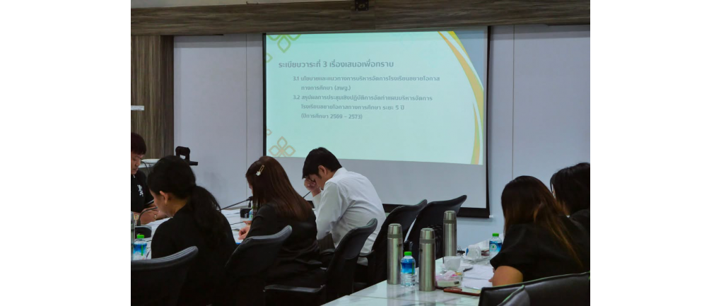 สพป.สุราษฎร์ธานี เขต 2 ประชุมคณะกรรมการจัดทำแผนบริหารโรงเรียนขยายโอกาสทางการศึกษา ระยะ 5 ปี (ปีการศึกษา 2569-2573) ครั้งที่ 1/2569 วันพฤหัสบดีที่ 5 มีนาคม 2569 -- นางสาวปวิชญา สินน้อย ผู้อำนวยการสำนักงานเขตพื้นที่การศึกษาประถมศึกษาสุราษฎร์ธานี เขต 2 มอบหมายให้ นางสาวริยาภรณ์ ยงคณะ รองผู้อำนวยการ สพป.สุราษฎร์ธานี เขต 2 เป็นประธาน ในการประชุมคณะกรรมการจัดทำแผนบริหารโรงเรียนขยายโอกาสทางการศึกษา ระยะ 5 ปี (ปีการศึกษา 2569-2573) ครั้งที่ 1/2569 ณ ห้องประชุมพุนพิน ทั้งนี้มีวัตถุประสงค์เพื่อพิจารณา ตรวจสอบความถูกต้อง และความสมบูรณ์ของแผนบริหารจัดการโรงเรียนขยายโอกาสทางการศึกษาในสังกัดทั้ง 46 แห่ง เพื่อให้มั่นใจว่าแผนดังกล่าวมีความสอดคล้องกับเป้าหมายการพัฒนาและเกณฑ์ที่กำหนด ก่อนจะดำเนินการบันทึกข้อมูลเข้าสู่ระบบของ สพฐ. ตามกรอบระยะเวลา ซึ่งข้อมูลที่ได้รับจากทุกโรงเรียนจะถูกนำมาบูรณาการเพื่อเป็นแนวทางสำคัญในการยกระดับคุณภาพการศึกษาและบริหารจัดการทรัพยากรให้เกิดประโยชน์สูงสุดต่อผู้เรียนในอนาคต