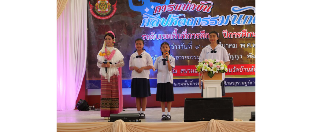 สพป.สุราษฎร์ธานี เขต 2 ร่วมพิธีเปิดการแข่งขันงานศิลปหัตถกรรมนักเรียน ครั้งที่ 73 ประจำปีการศึกษา 2568 สพป.สุราษฎร์ธานี เขต 3 ภายใต้แนวคิด “วิจิตรศิลป์ ถิ่นอารยธรรม ล้ำค่าภูมิปัญญา พัฒนาเด็กไทยสู่สากล” วันจันทร์ที่ 9 มีนาคม 2569 เวลา 09.00 น.-- นางสาวปวิชญา สินน้อย ผู้อำนวยการสำนักงานเขตพื้นที่การศึกษาประถมศึกษาสุราษฎร์ธานี เขต 2 เข้าร่วมพิธีเปิดการแข่งขันงานศิลปหัตถกรรมนักเรียน ครั้งที่ 73 ประจำปีการศึกษา 2568 ภายใต้แนวคิด “วิจิตรศิลป์ ถิ่นอารยธรรม ล้ำค่าภูมิปัญญา พัฒนาเด็กไทยสู่สากล” โดยมีนางสุริยา เครือรัตน์ ผู้อำนวยการสำนักงานเขตพื้นที่การศึกษาประถมศึกษาสุราษฎร์ธานี เขต 3 เป็นประธานในพิธีเปิด ณ อาคารอเนกประสงค์ โรงเรียนวัดบ้านส้อง อำเภอเวียงสระ จังหวัดสุราษฎร์ธานี การจัดการแข่งขันครั้งนี้มีวัตถุประสงค์เพื่อส่งเสริมให้นักเรียนได้แสดงออกถึงความสามารถด้านศิลปะ ดนตรี นาฏศิลป์ งานฝีมือ และทักษะทางวิชาการต่าง ๆ ตลอดจนเป็นเวทีในการพัฒนาศักยภาพผู้เรียนให้มีความคิดสร้างสรรค์ กล้าแสดงออก และสามารถนำความรู้ความสามารถไปต่อยอดสู่ระดับที่สูงขึ้น พร้อมทั้งอนุรักษ์และสืบสานศิลปวัฒนธรรมและภูมิปัญญาท้องถิ่นของไทย บรรยากาศภายในงานเป็นไปอย่างคึกคัก มีผู้บริหารสถานศึกษา ครู และนักเรียนจากสถานศึกษาในสังกัดเข้าร่วมการแข่งขันและให้กำลังใจอย่างพร้อมเพรียง สะท้อนถึงความร่วมมือของทุกภาคส่วนในการพัฒนาคุณภาพการศึกษาและศักยภาพของผู้เรียนอย่างต่อเนื่อง รูปภาพเพิ่มเติม : https://photos.app.goo.gl/7ZXDjbfA5AjZzeTt5