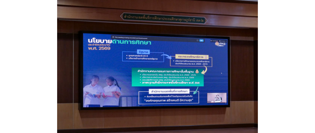 สพป.สุราษฎร์ธานี เขต 2 ขับเคลื่อนมาตรฐานการศึกษา ปี 2568 เข้าร่วมประชุมสร้างความเข้าใจการติดตามและประเมินผลการบริหารจัดการศึกษาขั้นพื้นฐาน วันจันทร์ที่ 30 มีนาคม 2569 -- นางสาวปวิชญา สินน้อย ผู้อำนวยการสำนักงานเขตพื้นที่การศึกษาประถมศึกษาสุราษฎร์ธานี เขต 2 พร้อมด้วย นางธัญกาญจน์ ภาสตโรจน์ รองผู้อำนวยการสำนักงานเขตพื้นที่การศึกษาประถมศึกษาสุราษฎร์ธานี เขต 2 ผู้อำนวยการกลุ่ม/หน่วย และเจ้าหน้าที่ผู้รับผิดชอบที่เกี่ยวข้อง เข้าร่วมการประชุมสร้างความเข้าใจการติดตาม ประเมินผลการบริหารและการจัดการศึกษาขั้นพื้นฐาน ตามมาตรฐานสำนักงานเขตพื้นที่การศึกษา พ.ศ. 2568 ประจำปีงบประมาณ พ.ศ. 2569 การประชุมในครั้งนี้มีวัตถุประสงค์หลักเพื่อสร้างความเข้าใจที่ตรงกันเกี่ยวกับเกณฑ์การติดตามและประเมินผลการดำเนินงาน ตามมาตรฐานสำนักงานเขตพื้นที่การศึกษาฉบับใหม่ (พ.ศ. 2568) ซึ่งถือเป็นกลไกสำคัญในการควบคุมคุณภาพและยกระดับประสิทธิภาพการบริหารจัดการศึกษาให้สอดคล้องกับนโยบายของสำนักงานคณะกรรมการการศึกษาขั้นพื้นฐาน (สพฐ.) ถือเป็นก้าวสำคัญในการเตรียมความพร้อมสำหรับการดำเนินงาน ในปีงบประมาณ 2569 โดยมุ่งเน้นให้บุคลากรทุกระดับมีความรู้ความเข้าใจในตัวชี้วัดและเกณฑ์การประเมินที่ชัดเจน เพื่อนำไปสู่การพัฒนากระบวนการทำงานที่มีประสิทธิภาพ โปร่งใส และเกิดประโยชน์สูงสุดต่อตัวผู้เรียน โรงเรียน และชุมชนในเขตพื้นที่บริการ ทั้งนี้ สพป.สุราษฎร์ธานี เขต 2 พร้อมขานรับนโยบายและมุ่งมั่นดำเนินงานตามมาตรฐานสำนักงานเขตพื้นที่การศึกษาอย่างเคร่งครัด เพื่อสร้างความเชื่อมั่นว่าการจัดการศึกษาขั้นพื้นฐานในพื้นที่จะเป็นไปอย่างมีคุณภาพและได้มาตรฐานสากลต่อไป