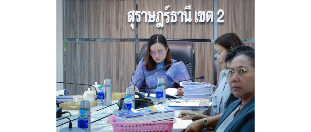 สพป.สุราษฎร์ธานี เขต 2 ปรับรูปแบบประชุมจัดเก็บข้อมูลผลการบริหารสถานศึกษา ผ่านระบบ Online วันอังคารที่ 7 เมษายน 2569 – นางสาวปวิชญา สินน้อย ผู้อำนวยการสำนักงานเขตพื้นที่การศึกษาประถมศึกษาสุราษฎร์ธานี เขต 2 เป็นประธานการประชุมจัดเก็บข้อมูลผลการบริหารจัดการสถานศึกษาของผู้บริหารสถานศึกษา (ประธานเครือข่ายสถานศึกษาขั้นพื้นฐาน) ผ่านระบบออนไลน์ ZOOM Cloud Meetings คณะผู้บริหารสถานศึกษาได้นำเสนอรายงานผลการปฏิบัติงานต่อคณะกรรมการผ่านระบบ Online โดยใช้สื่อประสมที่หลากหลายและทันสมัย อาทิ PowerPoint, Infographics และ Canva กำหนดเวลานำเสนอท่านละไม่เกิน 15 นาที เพื่อให้การจัดเก็บข้อมูลเป็นไปอย่างมีประสิทธิภาพ รวดเร็ว และสามารถนำข้อมูลไปใช้ในการบริหารงานบุคคลได้อย่างโปร่งใสและเป็นธรรม การปรับเปลี่ยนรูปแบบการประชุมสู่ระบบออนไลน์ในครั้งนี้ นอกจากจะสอดรับกับการทำงานในยุคดิจิทัลแล้ว ยังช่วยให้การบริหารจัดการข้อมูลของสำนักงานเขตพื้นที่การศึกษาประถมศึกษาสุราษฎร์ธานี เขต 2 เป็นไปอย่างเป็นระบบและมีความคล่องตัวสูงขึ้น