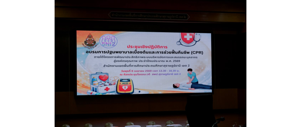 สพป.สุราษฎร์ธานี เขต 2 เสริมทักษะช่วยชีวิต จัดอบรมปฐมพยาบาลเบื้องต้นและ CPR วันพุธที่ 8 เมษายน 2559 เวลา 13.00 น. -- นางสาวปวิชญาสินน้อย ผู้อำนวยการสำนักงานเขตพื้นที่การศึกษาประถมศึกษาสุราษฎร์ธานี เขต 2 เป็นประธานในพิธีเปิดโครงการโครงการพัฒนาประสิทธิภาพระบบบริหารจัดการและสมรรถนะบุคลากรสู่องค์กรคุณภาพ กิจกรรมประชุมเชิงปฏิบัติการ การอบรมการปฐมพยาบาลเบื้องต้นและการช่วยฟื้นคืนชีพ (CPR) เพื่อสร้างความรู้ทักษะในการรับมือกับสถานการณ์ฉุกเฉินได้อย่างถูกต้องและทันท่วงที โดยมีคณะรองผู้อำนวยการฯ ผู้บริหารสถานศึกษา และบุคลากรในสังกัดเข้าร่วมรับการฝึกอบรมอย่างพร้อมเพรียงกันณ ห้องประชุมไชยชนะวดี การอบรมในครั้งนี้ได้รับความอนุเคราะห์วิทยากรผู้เชี่ยวชาญจาก สำนักงานสาธารณสุขจังหวัดสุราษฎร์ธานี มาถ่ายทอดความรู้ทั้งภาคทฤษฎีและภาคปฏิบัติ ประกอบด้วย 1. นางปานฤทัย นาคบำรุง พยาบาลวิชาชีพชำนาญการ 2.นางสาวดาวรุ่ง เหลืองอ่อน พยาบาลชิชาชีพ ภายในงาน บุคลากรทุกคนได้ร่วมฝึกทักษะสำคัญที่สามารถนำไปใช้ได้จริงในชีวิตประจำวันและในสถานศึกษา 🎯 สาระสำคัญในการอบรม การประเมินสถานการณ์และผู้ป่วยเบื้องต้น เทคนิคการกดหน้าอก (CPR) ที่ถูกต้องตามมาตรฐาน การใช้เครื่องกระตุกหัวใจไฟฟ้าอัตโนมัติ (AED) นางสาวปวิชญาสินน้อย เปิดเผยว่า การมีความรู้เรื่องการปฐมพยาบาลและ CPR เป็นทักษะพื้นฐานที่สำคัญมากสำหรับบุคลากรทางการศึกษา เพราะเราต้องดูแลทั้งตนเอง เพื่อนร่วมงาน และนักเรียน การฝึกอบรมครั้งนี้จึงไม่เพียงแต่เป็นการพัฒนาสมรรถนะตามตัวชี้วัดขององค์กรเท่านั้น แต่ยังเป็นการสร้างความปลอดภัยและความเชื่อมั่นให้เกิดขึ้นในสถานศึกษาอีกด้วย กิจกรรมดังกล่าวบรรลุวัตถุประสงค์ด้วยดี โดยบุคลากรที่เข้ารับการอบรมต่างให้ความสนใจและร่วมฝึกปฏิบัติกับหุ่นจำลอง เพื่อให้เกิดความชำนาญและเตรียมพร้อมเป็น ผู้ให้ความช่วยเหลือ เมื่อเกิดเหตุการณ์ไม่คาดฝันได้อย่างมีประสิทธิภาพ ภาพเพิ่มเติม:: https://photos.app.goo.gl/zZ4RmUpzdztm2MRd7