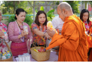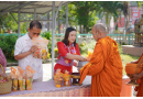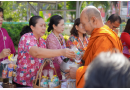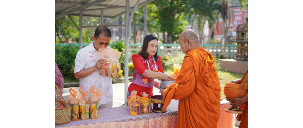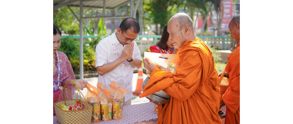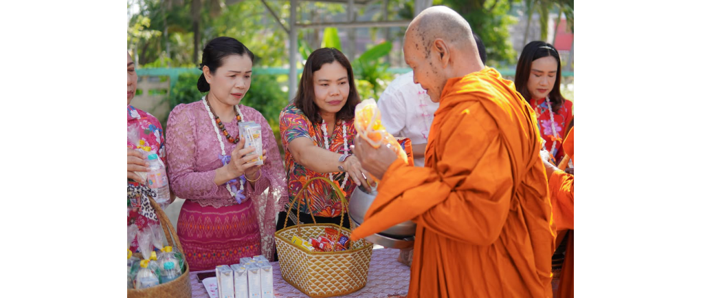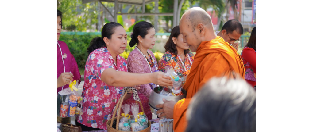1. พิธีทำบุญตักบาตรและถวายภัตตาหารเพล: ร่วมทำบุญตักบาตรและนำปิ่นโตถวายภัตตาหารเพลแด่พระสงฆ์ จำนวน 5 รูป