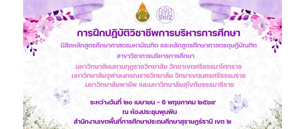 สพป.สุราษฎร์ธานี เขต 2 ต้อนรับนิสิตฝึกปฏิบัติวิชาชีพการบริหารการศึกษา จาก 4 มหาวิทยาลัยชั้นนำ มุ่งสร้างนักบริหารการศึกษามืออาชีพ วันจันทร์ที่ 20 เมษายน 2569 เวลา 09.30 น. -- นางสาวปวิชญา สินน้อย ผู้อำนวยการสำนักงานเขตพื้นที่การศึกษาประถมศึกษาสุราษฎร์ธานี เขต 2 มอบหมายให้ นางธัญกาญจน์ ภาสตโรจน์ รองผู้อำนวยการสำนักงานเขตพื้นที่การศึกษาประถมศึกษาสุราษฎร์ธานี เขต 2 เป็นประธานในพิธีเปิด การฝึกปฏิบัติวิชาชีพการบริหารการศึกษา โดยมีกำหนดจัดขึ้นระหว่างวันที่ 20 เมษายน – 6 พฤษภาคม 2569 ณ สำนักงานเขตพื้นที่การศึกษาประถมศึกษาสุราษฎร์ธานี เขต 2 การฝึกปฏิบัติในครั้งนี้มีวัตถุประสงค์เพื่อให้นิสิตในระดับบัณฑิตศึกษาได้เรียนรู้ประสบการณ์จริงจากการบริหารงานในหน่วยงานทางการศึกษา โดยมีนิสิตเข้าร่วมจากหลักสูตรศึกษาศาสตรมหาบัณฑิต และหลักสูตรศึกษาศาสตรดุษฎีบัณฑิต สาขาวิชาการบริหารการศึกษา จาก 4 สถาบัน การศึกษา ได้แก่ : มหาวิทยาลัยมหามกุฎราชวิทยาลัย วิทยาเขตศรีธรรมาโศกราช มหาวิทยาลัยมหาจุฬาลงกรณราชวิทยาลัย วิทยาเขตนครศรีธรรมราช มหาวิทยาลัยพายัพ มหาวิทยาลัยสุโขทัยธรรมาธิราช ทั้งนี้การฝึกปฏิบัติวิชาชีพเป็นกระบวนการสำคัญที่จะช่วยให้นิสิตได้นำองค์ความรู้ภาคทฤษฎีมาปรับใช้ในการแก้ไขปัญหาและพัฒนาการศึกษาในพื้นที่จริง โดยทาง สพป.สุราษฎร์ธานี เขต 2 พร้อมที่จะถ่ายทอดทักษะการบริหารจัดการครอบคลุมทุกมิติ เพื่อสร้างนักบริหารรุ่นใหม่ที่มีคุณภาพต่อไป