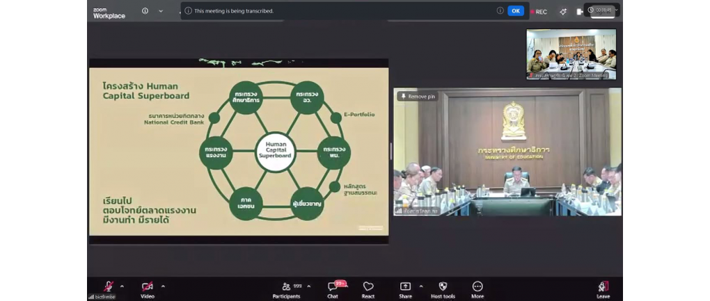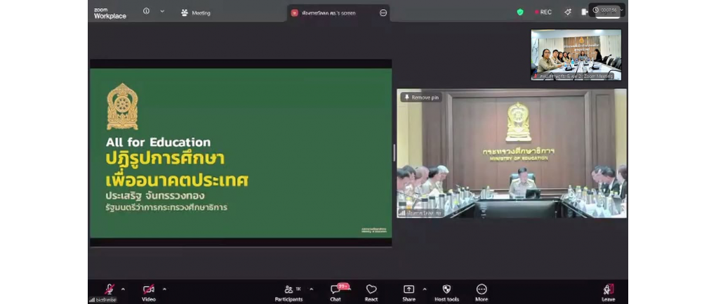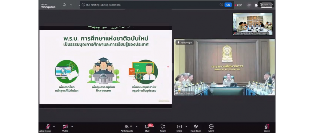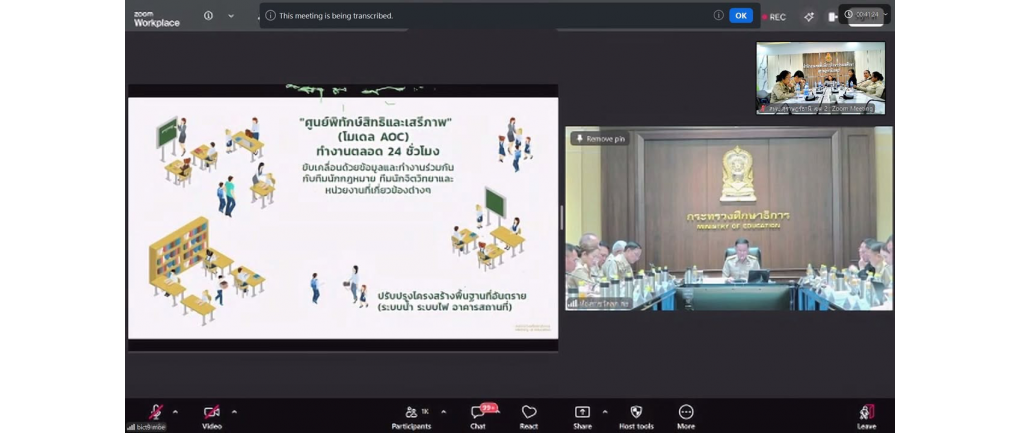 สพป.สุราษฎร์ธานี เขต 2 ร่วมรับฟังนโยบาย รมว.ศธ. ผ่านช่องทางอิเล็กทรอนิกส์ (Zoom Meeting) วันจันทร์ที่ 20 เมษายน 2569 เวลา 14.00 น. -- นางสาวปวิชญา สินน้อย ผู้อำนวยการสำนักงานเขตพื้นที่การศึกษาประถมศึกษาสุราษฎร์ธานี เขต 2 มอบหมายให้ นางสาวริยาภรณ์ ยงคณะ รองผู้อำนวยการสำนักงานเขตพื้นที่การศึกษาประถมศึกษาสุราษฎร์ธานี เขต 2 เป็นประธาน พร้อมด้วยคณะรองผู้อำนวยการสำนักงานเขตพื้นที่การศึกษา และผู้อำนวยการกลุ่ม/หน่วย เข้าร่วมรับฟังการมอบนโยบายของ นายประเสริฐ จันทรรวงทอง รัฐมนตรีว่าการกระทรวงศึกษาธิการ ผ่านช่องทางอิเล็กทรอนิกส์ (Zoom Meeting) ณ ห้องประชุมพุนพิน สำนักงานเขตพื้นที่การศึกษาประถมศึกษาสุราษฎร์ธานี เขต 2 การประชุมครั้งนี้จัดขึ้นโดยสำนักงานคณะกรรมการการศึกษาขั้นพื้นฐาน (สพฐ.) เพื่อเชิญผู้บริหารส่วนราชการในสังกัด เข้าร่วมรับฟังแนวทางการขับเคลื่อนนโยบายทางการศึกษาของรัฐมนตรีว่าการกระทรวงศึกษาธิการ เพื่อให้หน่วยงานในส่วนภูมิภาคสามารถนำนโยบายไปปฏิบัติให้เกิดผลสัมฤทธิ์อย่างเป็นรูปธรรม โดยคณะผู้บริหาร สพป.สุราษฎร์ธานี เขต 2 ได้ร่วมรับฟังจุดเน้นสำคัญในการพัฒนาคุณภาพการเรียนการสอนและการบริหารจัดการศึกษา เพื่อนำมาปรับใช้ให้สอดคล้องกับบริบทของพื้นที่และขับเคลื่อนการศึกษาไทยให้ก้าวหน้าตามเป้าหมายของกระทรวงศึกษาธิการต่อไป