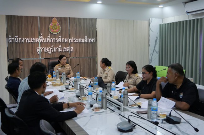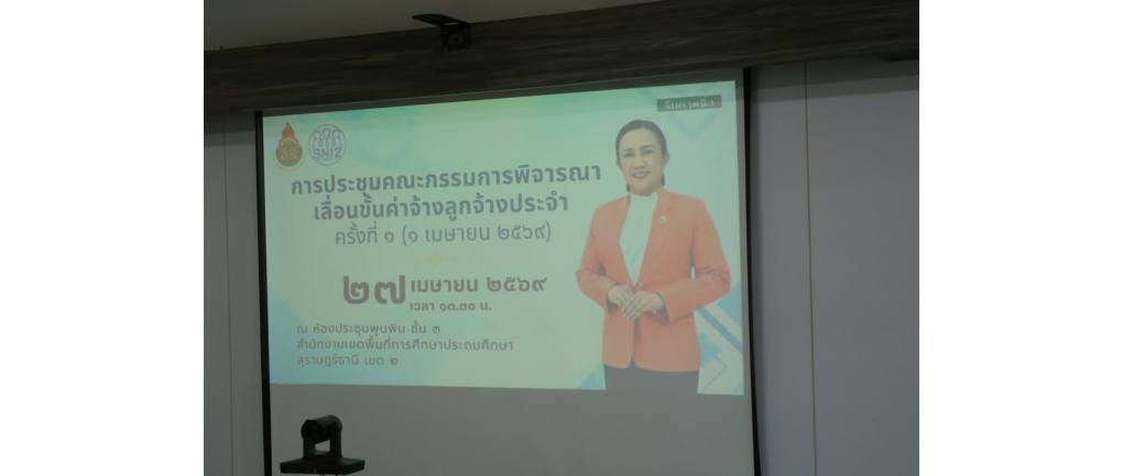 สพป.สุราษฎร์ธานี เขต 2 ประชุมคณะกรรมการพิจารณาเลื่อนขั้นค่าจ้างลูกจ้างประจำ ครั้งที่ 1 (1 เมษายน 2569) วันจันทร์ที่ 27 เมษายน 2569 เวลา 13.30 น. -- นางสาวปวิชญา สินน้อย ผู้อำนวยการสำนักงานเขตพื้นที่การศึกษาประถมศึกษาสุราษฎร์ธานี เขต 2 เป็นประธานในการประชุมคณะกรรมการพิจารณาเลื่อนขั้นค่าจ้างลูกจ้างประจำ ครั้งที่ 1 (1 เมษายน 2569) พร้อมด้วยนายภูริพัฒน์ บุญมา รองผู้อำนวยการสำนักงานเขตพื้นที่การศึกษาประถมศึกษาสุราษฎร์ธานี เขต 2 และคณะกรรมการที่ได้รับแต่งตั้งเข้าร่วมประชุมโดยพร้อมเพรียงกัน ณ ห้องประชุมพูนพิน ชั้น 3 สำนักงานเขตพื้นที่การศึกษาประถมศึกษาสุราษฎร์ธานี เขต 2 การประชุมในครั้งนี้มีวัตถุประสงค์เพื่อดำเนินการพิจารณาการเลื่อนขั้นค่าจ้างของลูกจ้างประจำในสังกัด ให้เป็นไปตามระเบียบและข้อบังคับที่เกี่ยวข้อง โดยเน้นย้ำให้การดำเนินงานเป็นไปด้วยความเรียบร้อย มีความเหมาะสม โปร่งใส และเป็นธรรม เพื่อเป็นขวัญและกำลังใจให้กับบุคลากรในการปฏิบัติหน้าที่อย่างเต็มกำลังความสามารถ บรรลุวัตถุประสงค์ตามนโยบายของสำนักงานเขตพื้นที่การศึกษา ต่อไป