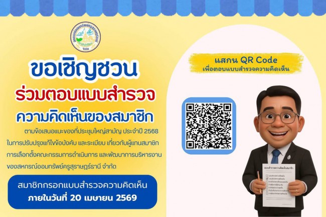 สพป.สุราษฎรธานี เขต 2 ขอเชิญชวนร่วมตอบแบบสำรวจความคิดเห็นของสมาชิกตามข้อเสนอแนะ