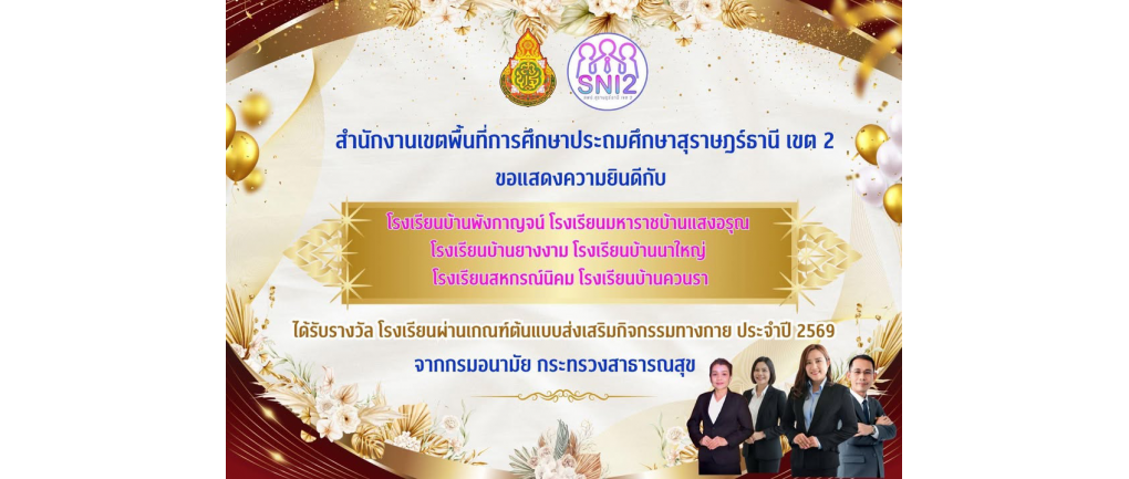 ที่ประสบความสำเร็จในการผ่านเกณฑ์และได้รับรางวัล โรงเรียนผ่านเกณฑ์ต้นแบบส่งเสริมกิจกรรมทางกาย ประจำปี 2569 จากกรมอนามัย กระทรวงสาธารณสุข 🏆✨
