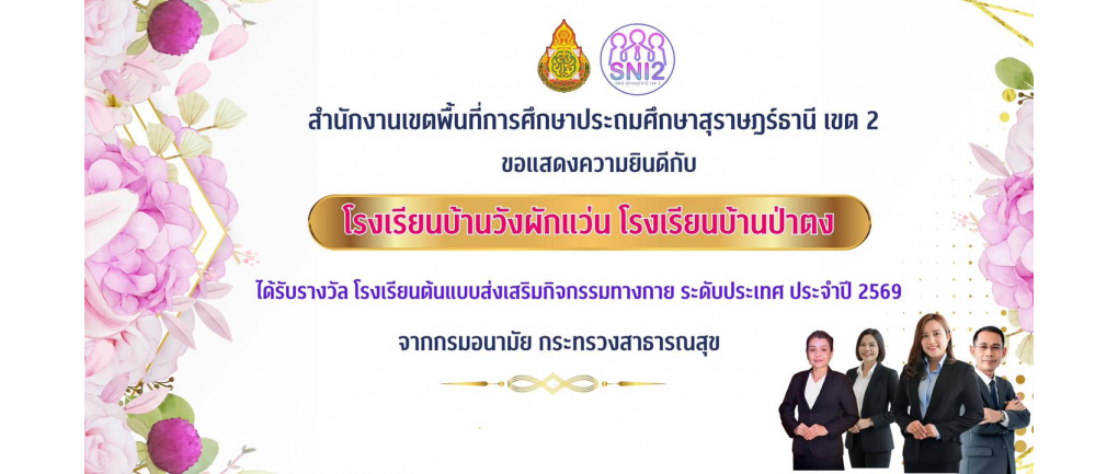ขอแสดงความชื่นชมและยินดีอย่างยิ่งกับสถานศึกษาในสังกัดสำนักงานเขตพื้นที่การศึกษาประถมศึกษาสุราษฎร์ธานี เขต 2 ทั้ง 2 แห่ง ได้แก่