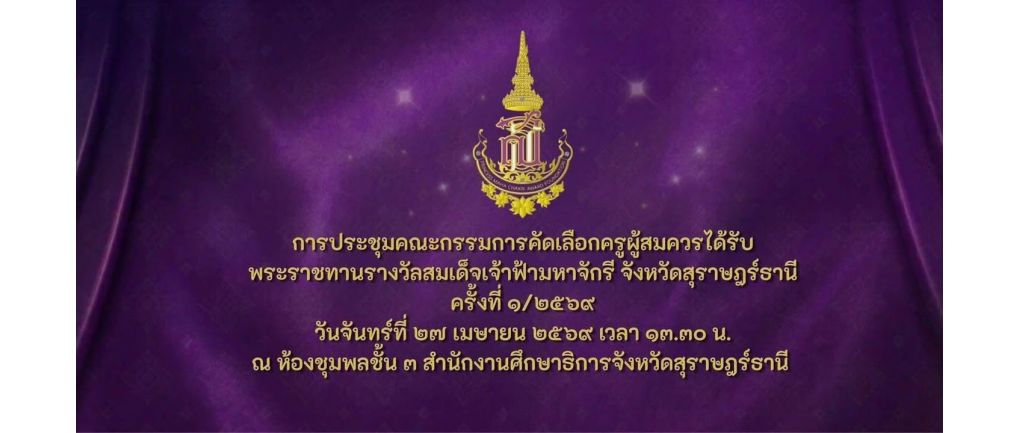 สพป. สุราษฎร์ธานี เขต 2 เข้าร่วมประชุมคณะกรรมการคัดเลือกครูผู้สมควรได้รับพระราชทานรางวัลสมเด็จเจ้าฟ้ามหาจักรี จังหวัดสุราษฎร์ธานี