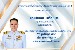 🎉 สำนักงานเขตพื้นที่การศึกษาประถมศึกษาสุราษฎร์ธานี เขต 2 ขอแสดงความยิน... (ดู : 12)