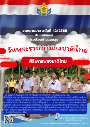 นำโดย นางมัณทนา จำนงค์จิตร ผู้อำนวยการโรงเรียนบ้านแสนสุข ได้จัดพิธีเคารพธงชาติและร้องเพลงชาติไทย ร่วมกันอย่างพร้อมเพรียงภายในพิธีประกอบด้วยการเชิญธงชาติขึ้นสู่ยอดเสา การเคารพธงชาติ และการร้องเพลงชาติไทย โดยมีผู้บริหาร ครู บุคลากร และนักเรียนเข้าร่วมกิจกรรมอย่างพร้อมหน้า เพื่อเป็นการปลูกฝังจิตสำนึกความรักชาติ ความภาคภูมิใจในความเป็นไทย และตระหนักถึงคุณค่าของธงชาติซึ่งเป็นสัญลักษณ์แห่งเอกราช ความสามัคคี และความเป็นเอกรูปของชาติไทย การจัดกิจกรรมในครั้งนี้นับเป็นอีกหนึ่งโอกาสอันดี ที่ทุกคนได้ร่วมแสดงความจงรักภักดี และสืบสานเจตนารมณ์ในการธำรงไว้ซึ่งเกียรติภูมิของชาติไทย