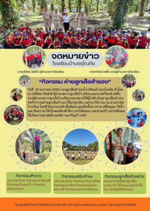 กิจกรรม ค่ายลูกเสือสำรอง วันที่ 30 มกราคม 2569 กองลูกเสือสำรองโรงเรียนบ้านอรุโณทัย นำโดย นางจุรีย์พร นิลสังข์ ผู้อำนวยการลูกเสือโรงเรียน และนายทวีพงษ์ แซ่ตั้ง รองผู้อำนวยการลูกเสือโรงเรียน มอบหมายให้ผู้บังคับบัญชาลูกเสือสำรอง