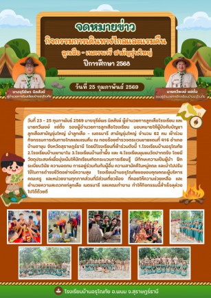 วันที่ 23 - 25 กุมภาพันธ์ 2569 นางจุรีย์พร นิลสังข์ ผู้อำนวยการลูกเสือโรงเรียน และนายทวีพงษ์ แซ่ตั้ง รองผู้อำนวยการลูกเสือโรงเรียน มอบหมายให้ผู้บังคับบัญชาลูกเสือสามัญรุ่นใหญ่ นำลูกเสือ - เนตรนารี สามัญรุ่นใหญ่ จำนวน 62 คน เข้าร่วมกิจกรรมการเดินทางไกลและแรมคืน ณ กองร้อยตำรวจตระเวนชายแดนที่ 416 อำเภอบ้านตาขุน จังหวัดสุราษฎร์ธานี โดยมีโรงเรียนที่เข้าร่วมดังนี้ 1.โรงเรียนบ้านอรุโณทัย 2.โรงเรียนบ้านเขานาใน 3.โรงเรียนบ้านถ้ำผึ้ง และ 4.โรงเรียนชุมชนวัดปากตรัง โดยมีวัตถุประสงค์เพื่อมุ่งเน้นให้นักเรียนเกิดกระบวนการเรียนรู้ มีทักษะความเป็นผู้นำ ฝึกระเบียบวินัย ความอดทน การอยู่ร่วมกันกับผู้อื่น ความสามัคคีในหมู่คณะ และนำไปปรับใช้ในการดำรงชีวิตอย่างมีความสุข โรงเรียนบ้านอรุโณทัยขอขอบคุณคณะผู้บริหาร คณะครู และหน่วยงานทุกภาคส่วนที่มีส่วนเกี่ยวข้อง ที่คอยให้ความช่วยเหลือ และอำนวยความสะดวกแก่ลูกเสือ เนตรนารี และคณะทำงาน ทำให้กิจกรรมนี้สำเร็จลุล่วงไปได้ด้วยดี